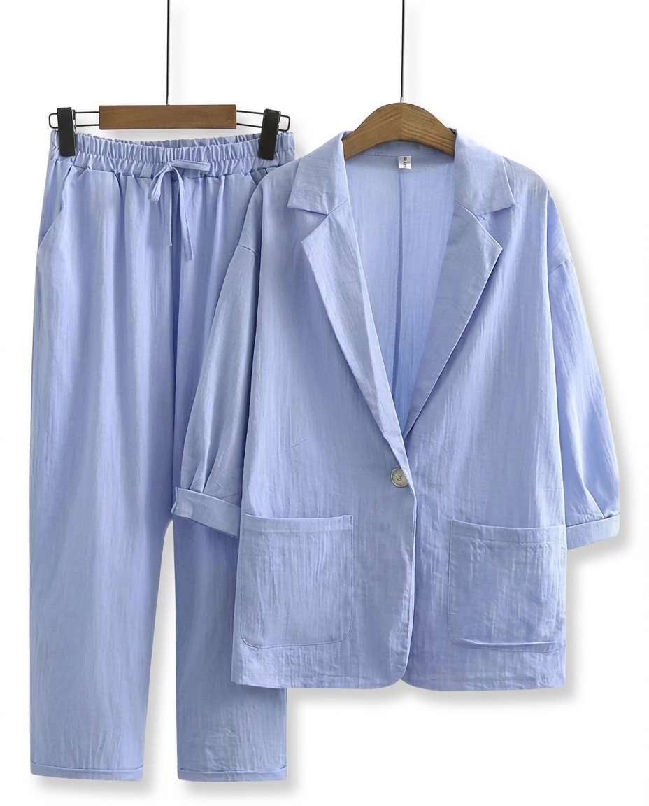 Damski Garnitur z Dopasowanymi Spodniami | Lekki Materiał | Nowoczesny Krój na Co Dzień i do Pracy