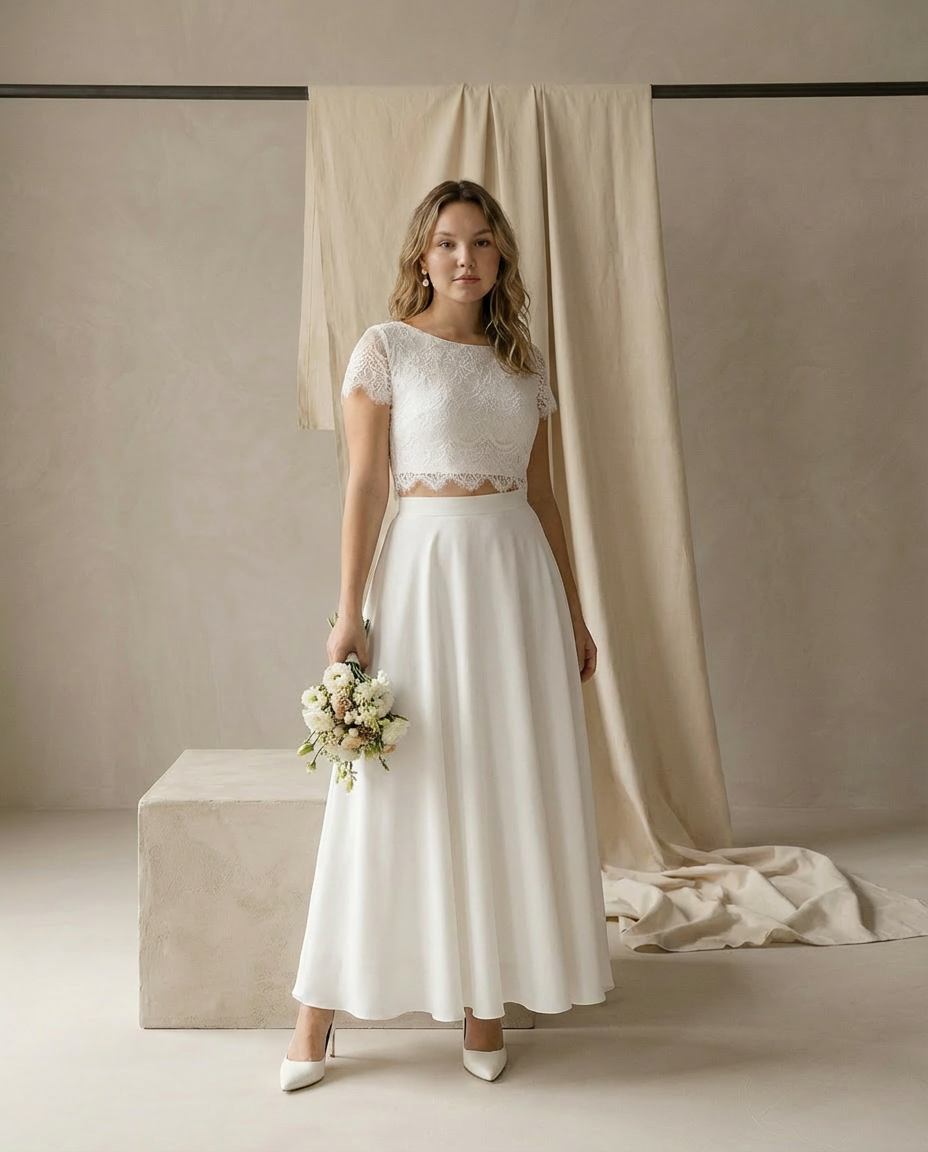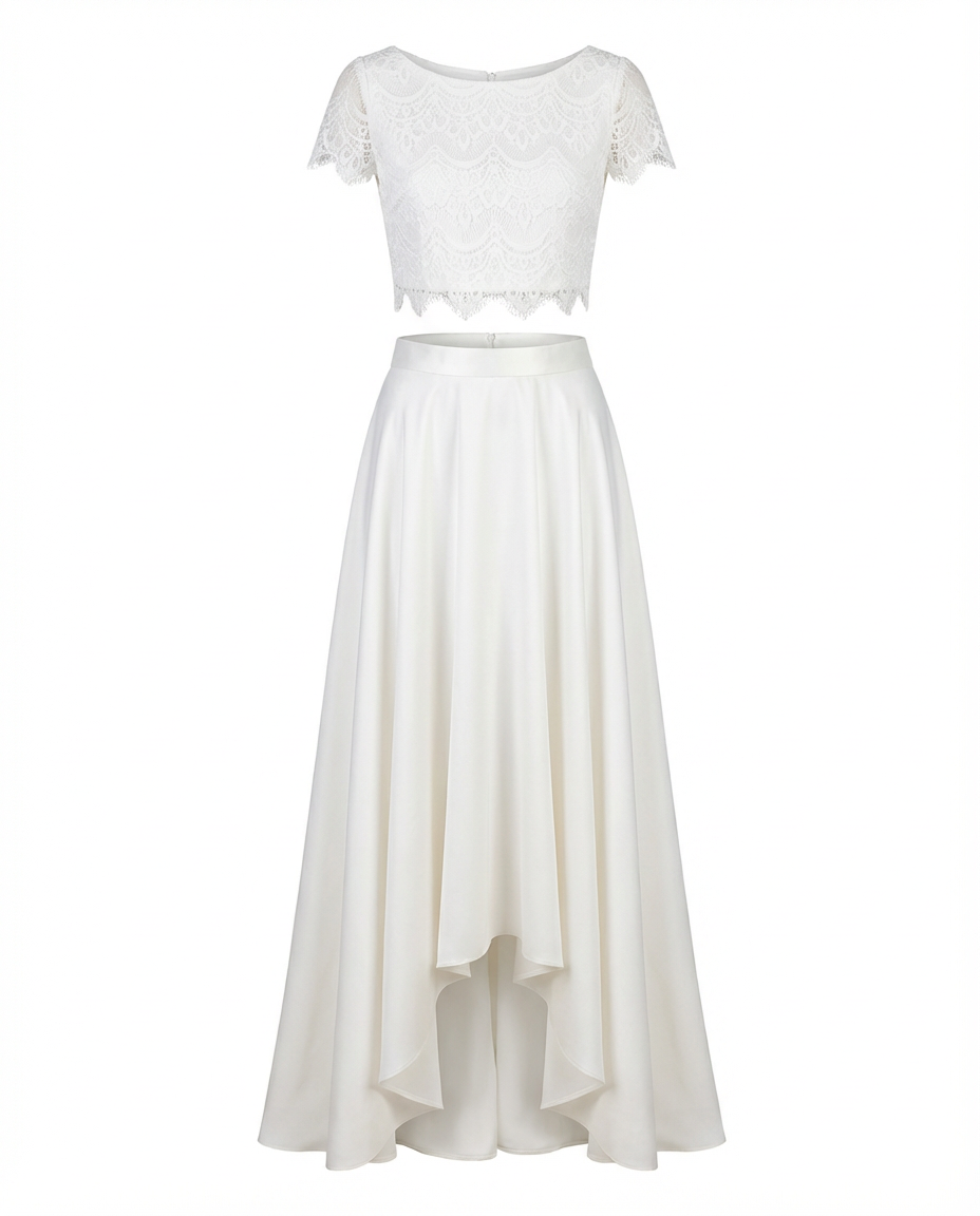 Suknia Ślubna Koronkowa | Regularny Krój | Zwiewna Spódnica Maxi | Na Wesele