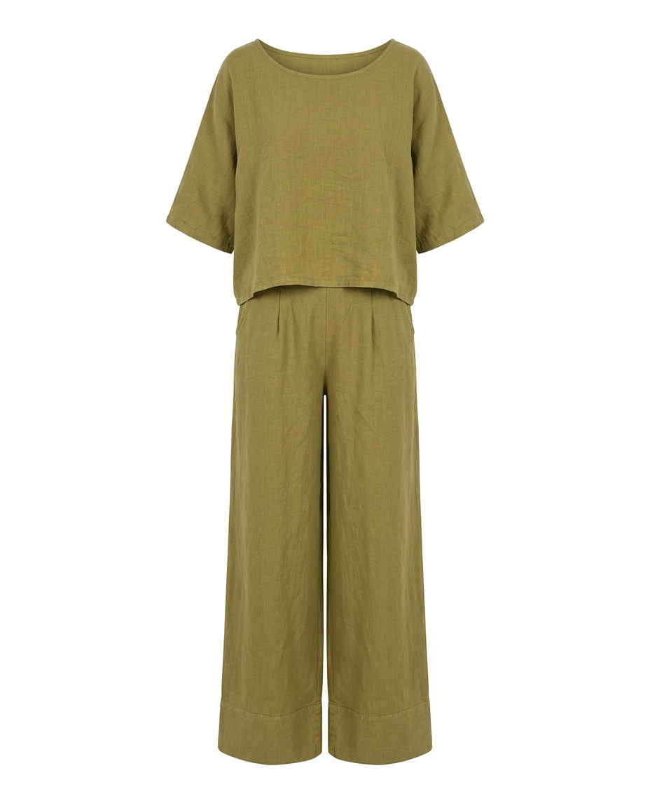 Komplet z Tunika Koszulową | Elegancki Minimalizm | Długie Spodnie i Długi Rękaw