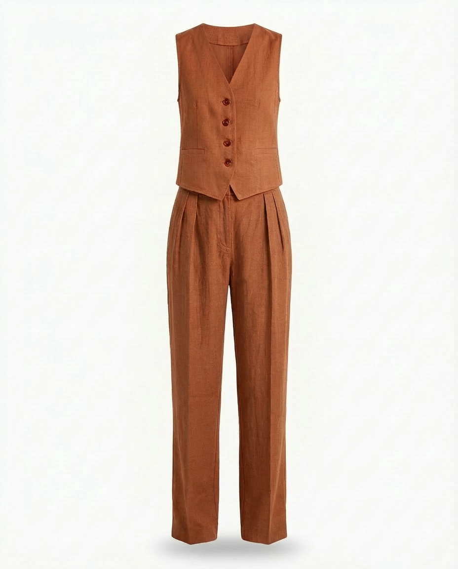 Damski Garnitur Dwuczęściowy | Elegancka Kamizelka na Guziki i Spodnie z Szeroką Nogawką | Stylowy Zestaw Biznesowy