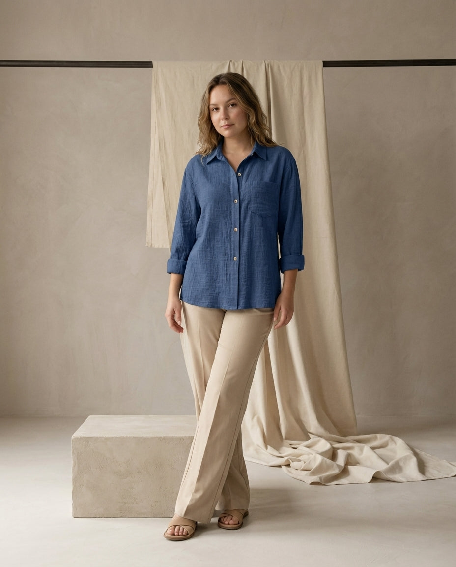 Materiały dobierane są pod kątem struktury, komfortu i trwałości. Od mięsistej bawełny po funkcjonalne mieszanki — każda tkanina wspiera dopasowanie, teksturę i długotrwałe użytkowanie.
