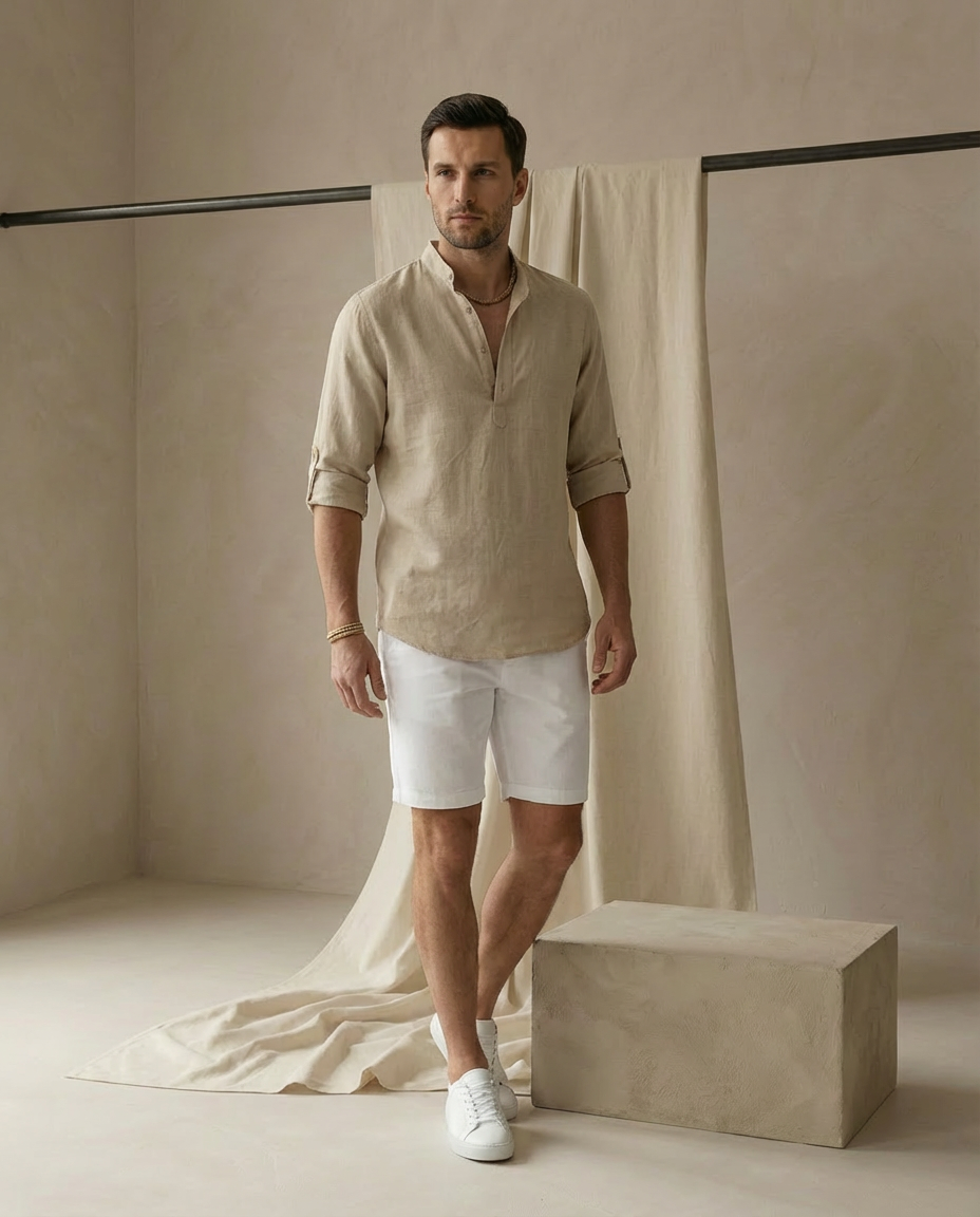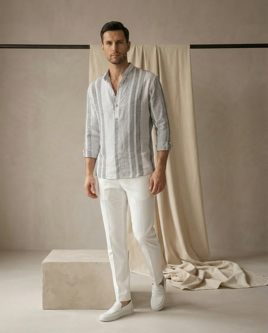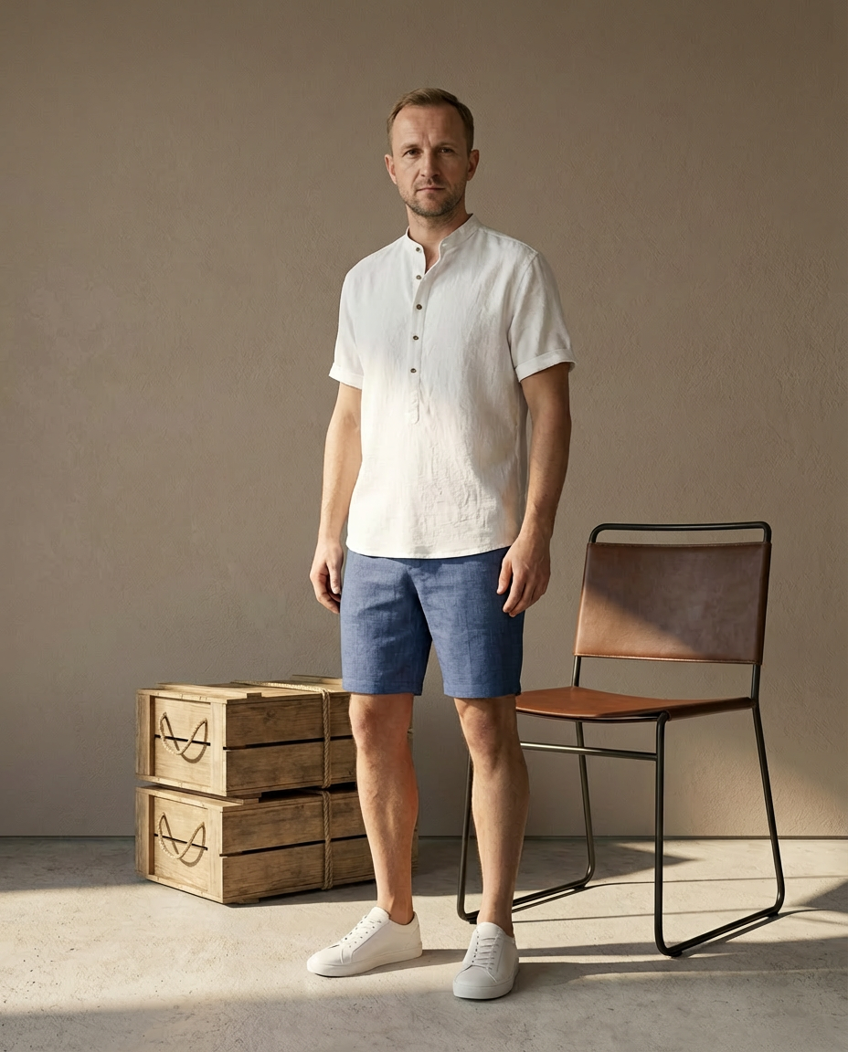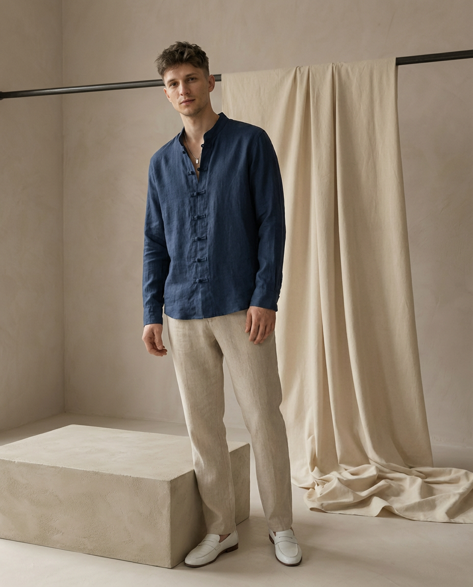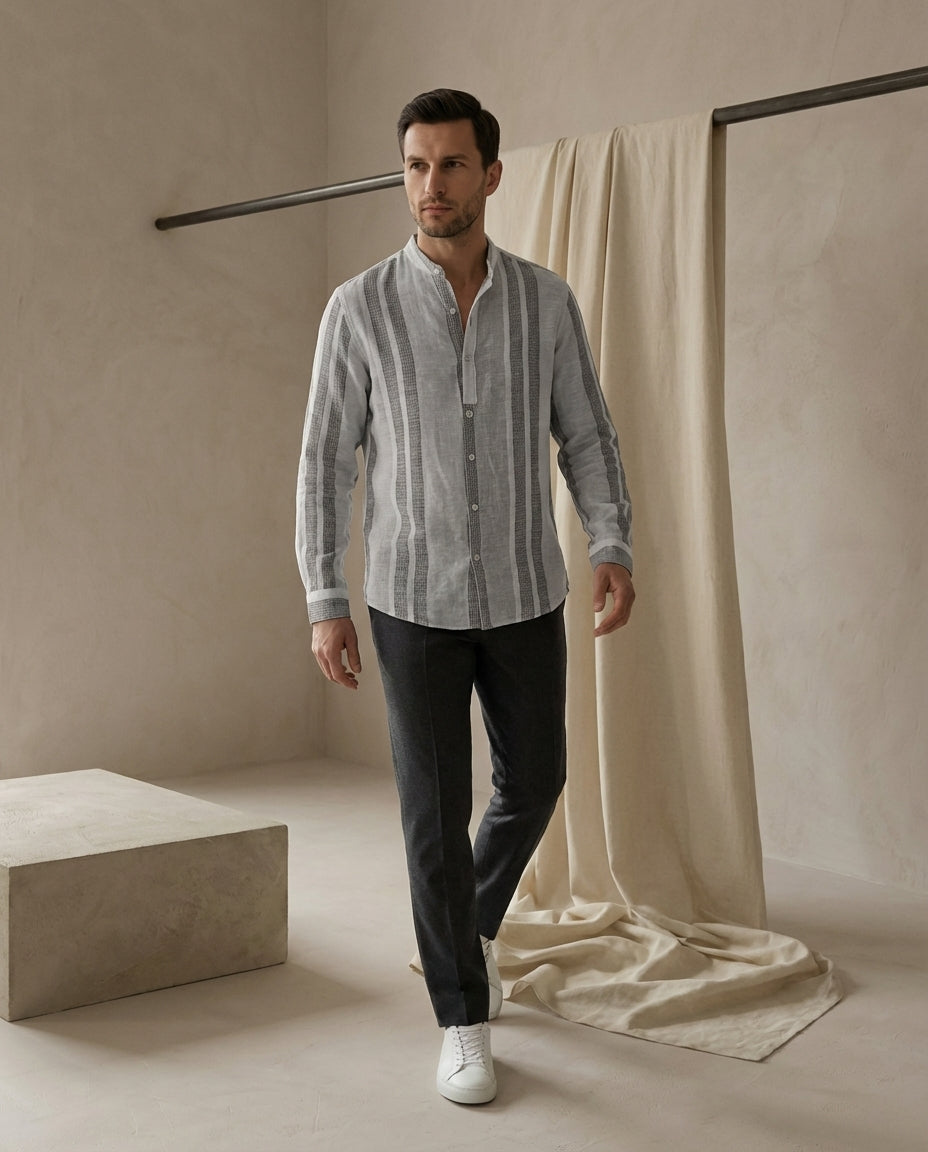 Elegancka męska koszula lniana | Luźny krój | Miękka tkanina | Na co dzień