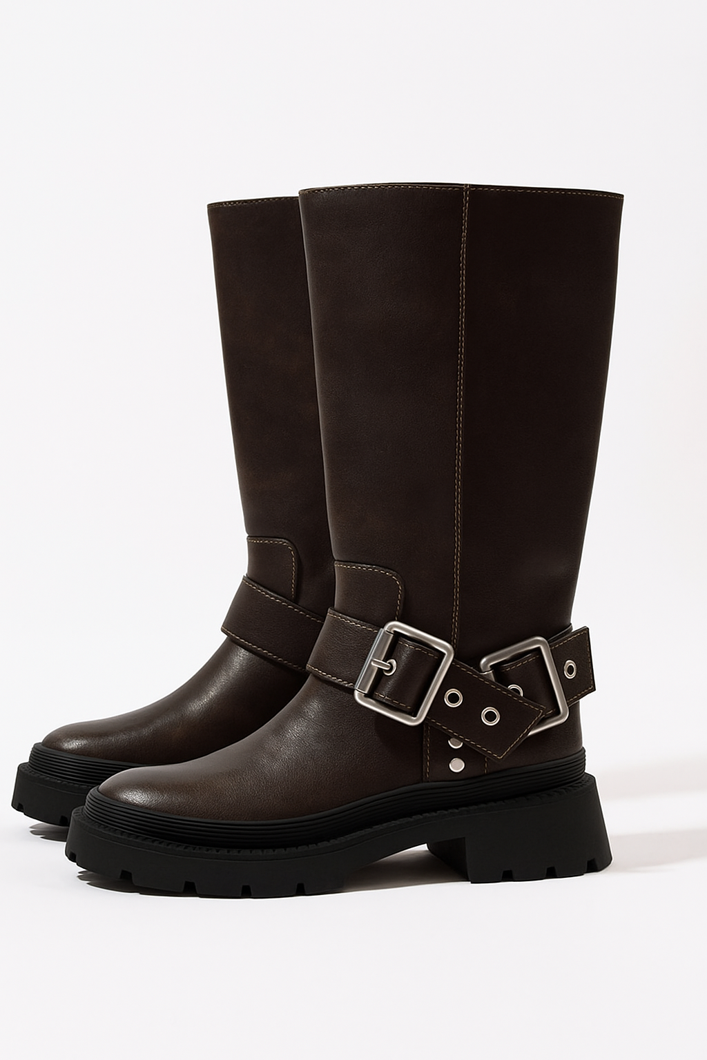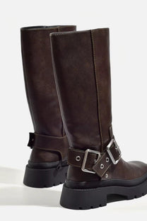 Kozaki za Kolano z Klamrą | Skórzane Wykończenie | Gruba Podeszwa