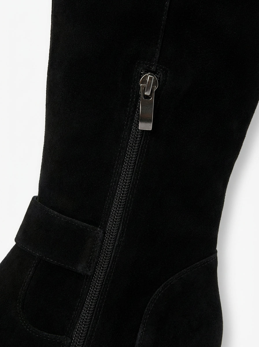 Damskie Kozaki z Zamszowym Wykończeniem | Wysoka Cholewka | Płaski Obcas | Stylowe na Jesień i Zimę