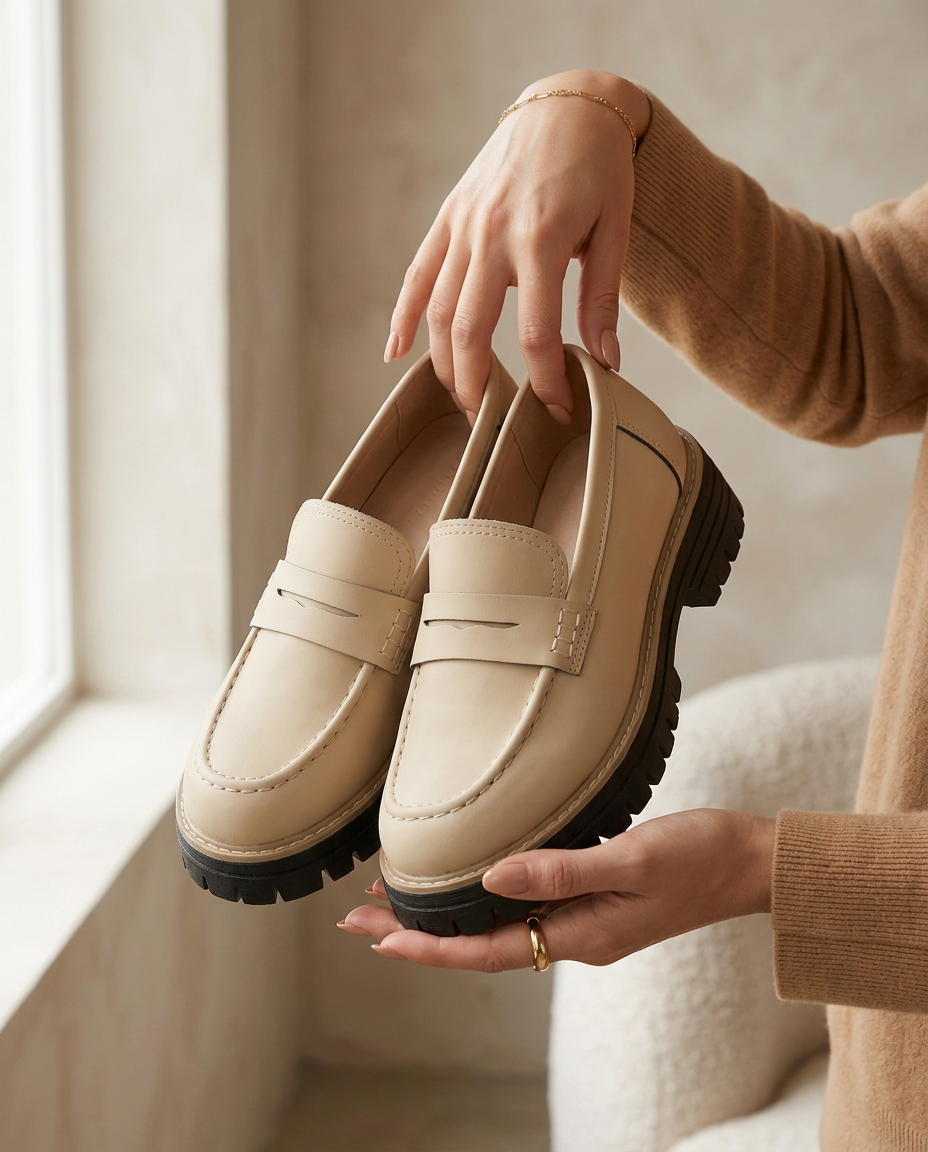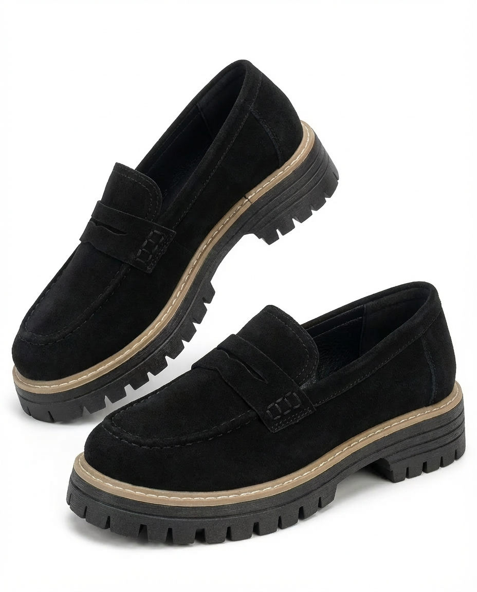 Odkryj swobodny styl dzięki tym mokasynom, które zapewniają wygodę i elegancję na co dzień. Ich wsuwany krój sprawia, że są łatwe do założenia, a gruba podeszwa dodaje nie tylko wzrostu, ale i modnego charakteru. Idealne do noszenia na spotkania, do pracy czy na weekendowe wyjścia, te mokasyny z pewnością podkreślą Twoją osobowość i styl.