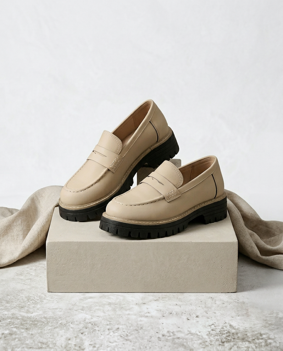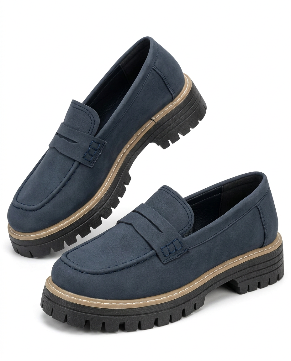 Mokasyny Damskie Mokasyny Na Platformie | Wsuwany Krój | Gruba Podeszwa | Na Co Dzień