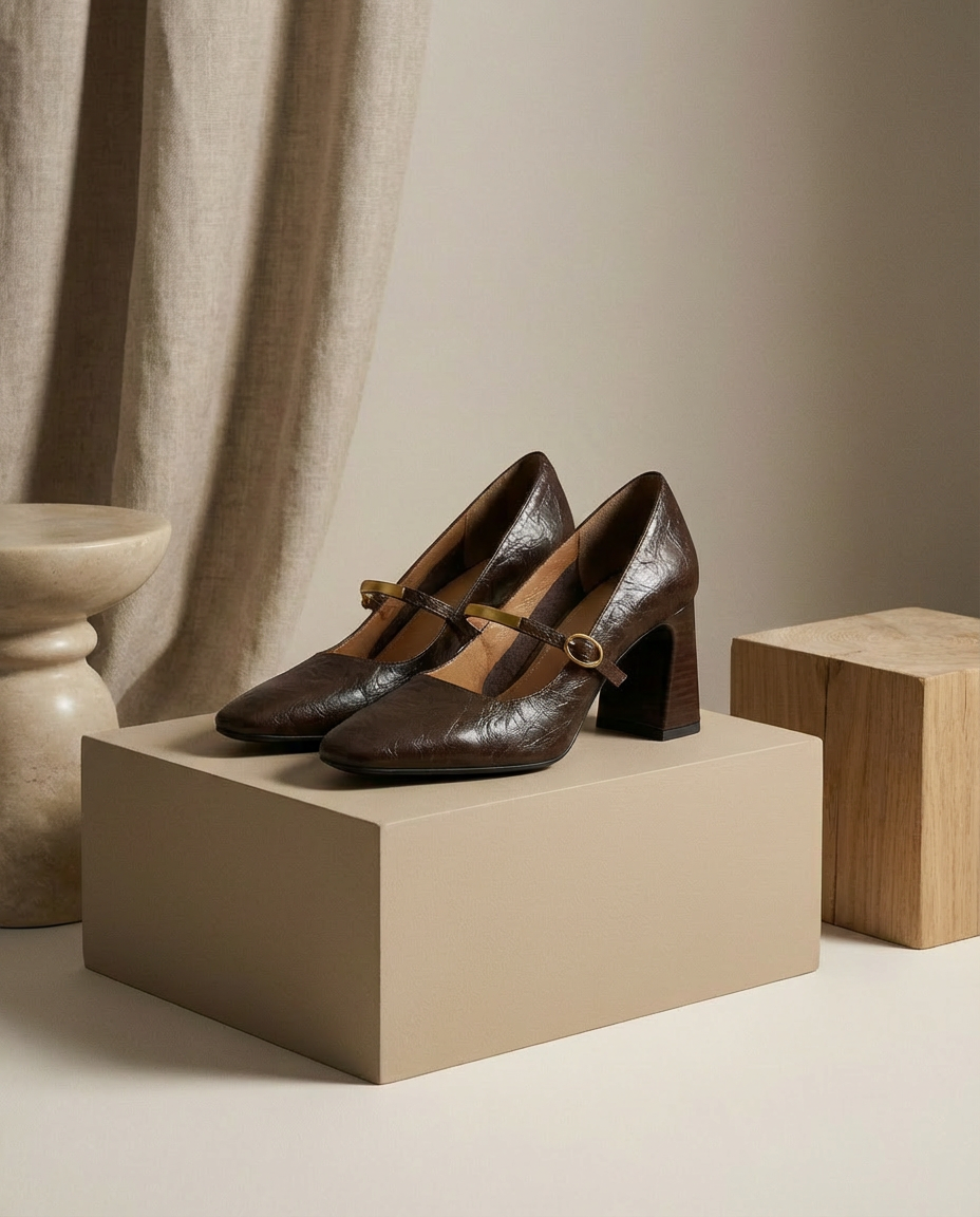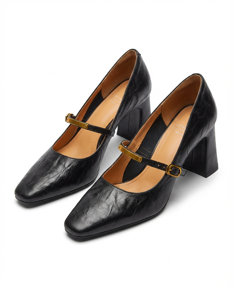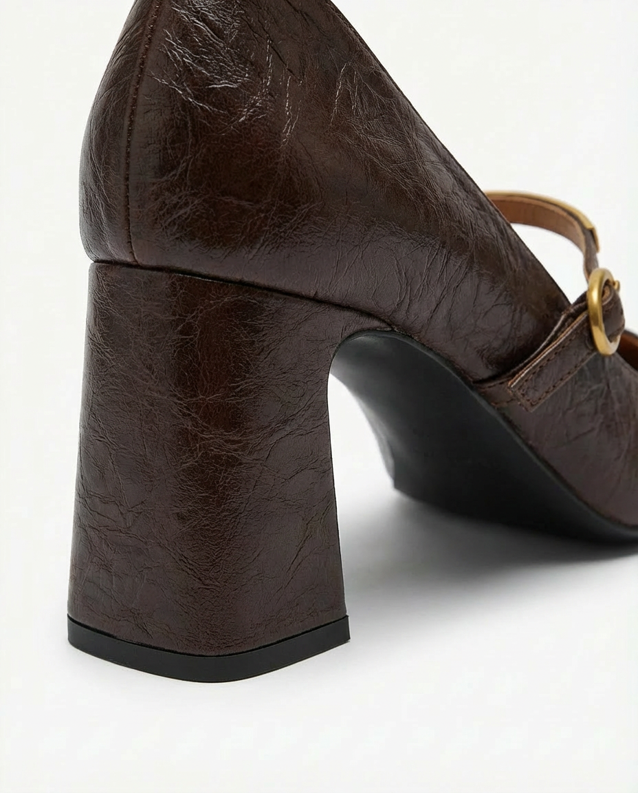 Szpilki Damskie Skórzane Mary Jane | Klasyczny Krój | Stabilny Obcas | Na Co Dzień