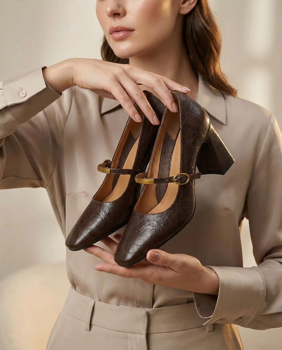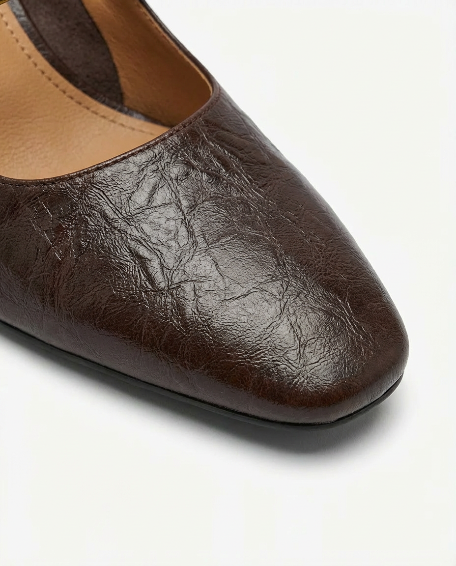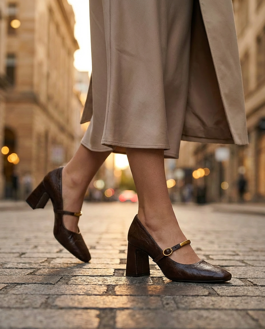 Szpilki Damskie Skórzane Mary Jane | Klasyczny Krój | Stabilny Obcas | Na Co Dzień