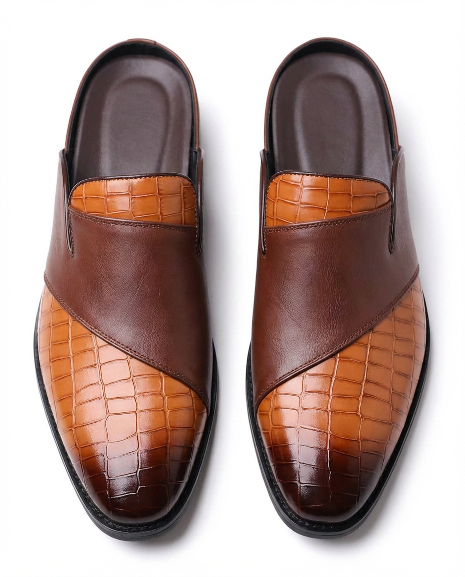 Buty Mule Męskie Stylowe | Wsuwana Konstrukcja | Teksturowana Cholewka | Na Wiosnę i Lato