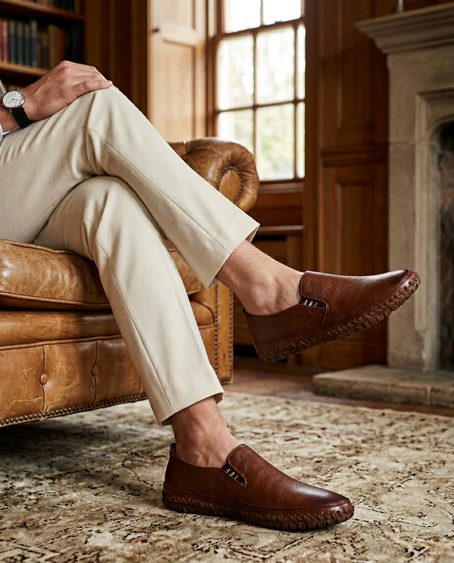 Mokasyny męskie skórzane | Klasyczny krój | Wygodne wsuwane | Na co dzień