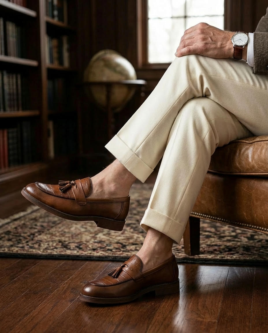 Eleganckie mokasyny męskie skórzane | Wsuwane | Z frędzlami | Na co dzień