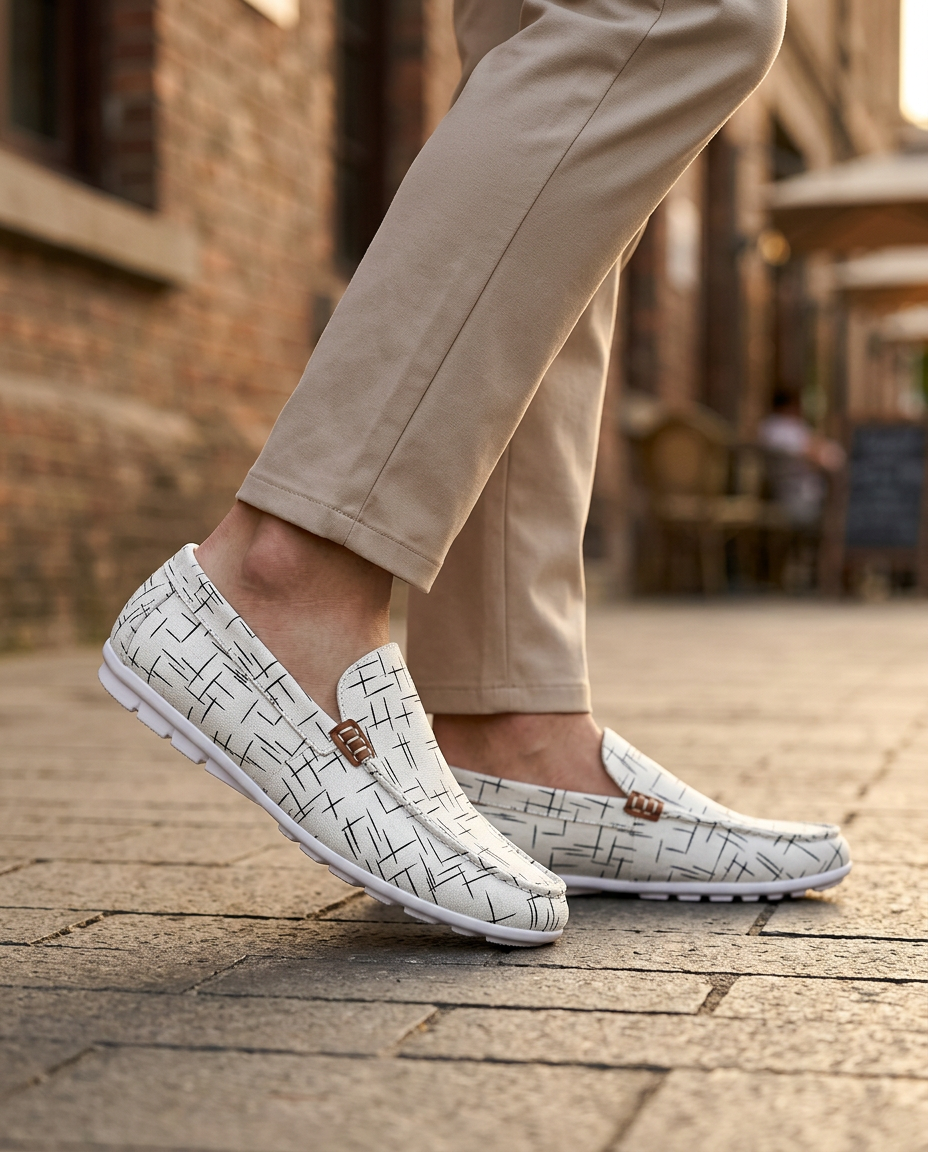 Mokasyny Męskie Skórzane Męskie Mokasyny | Sportowy Krój | Wytłoczony Wzór | Na Co Dzień