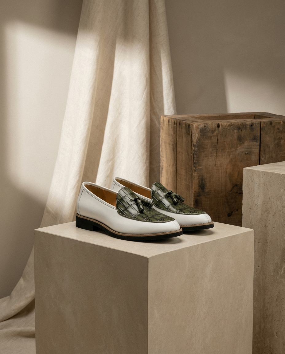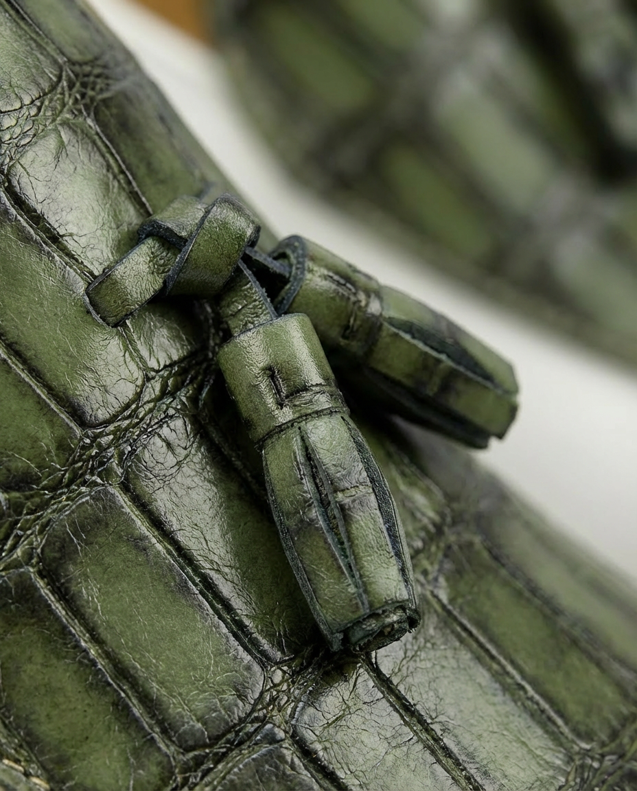 Męskie mokasyny to idealny wybór na co dzień, łączący elegancję z wygodą. Dzięki starannie zaprojektowanemu panelowi z wytłoczonym wzorem skóry krokodyla i klasycznym frędzlom, buty te dodadzą charakteru każdej stylizacji. Wyobraź sobie, jak świetnie będą wyglądać w połączeniu ze spodniami o dopasowanym kroju lub eleganckimi jeansami, zapewniając komfort i pewność siebie w każdej sytuacji.