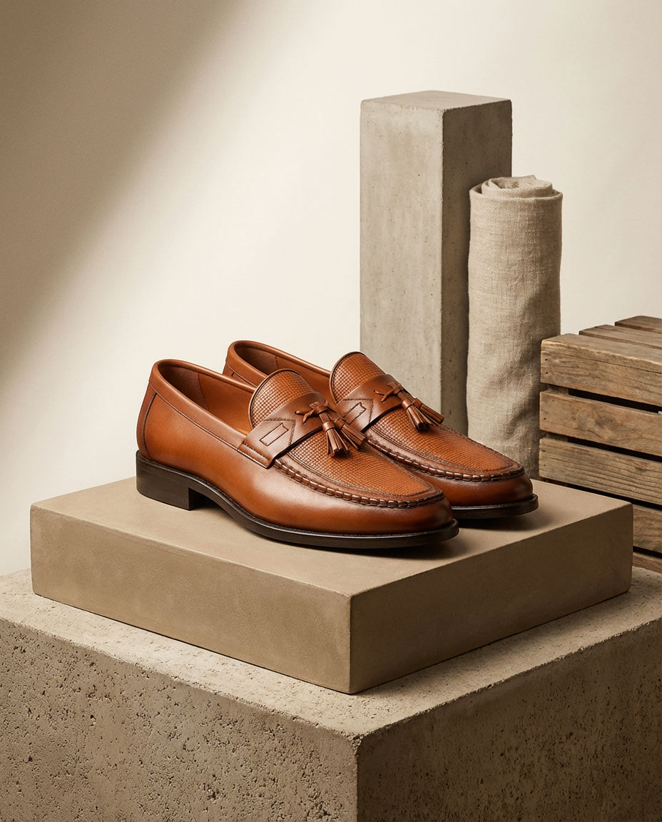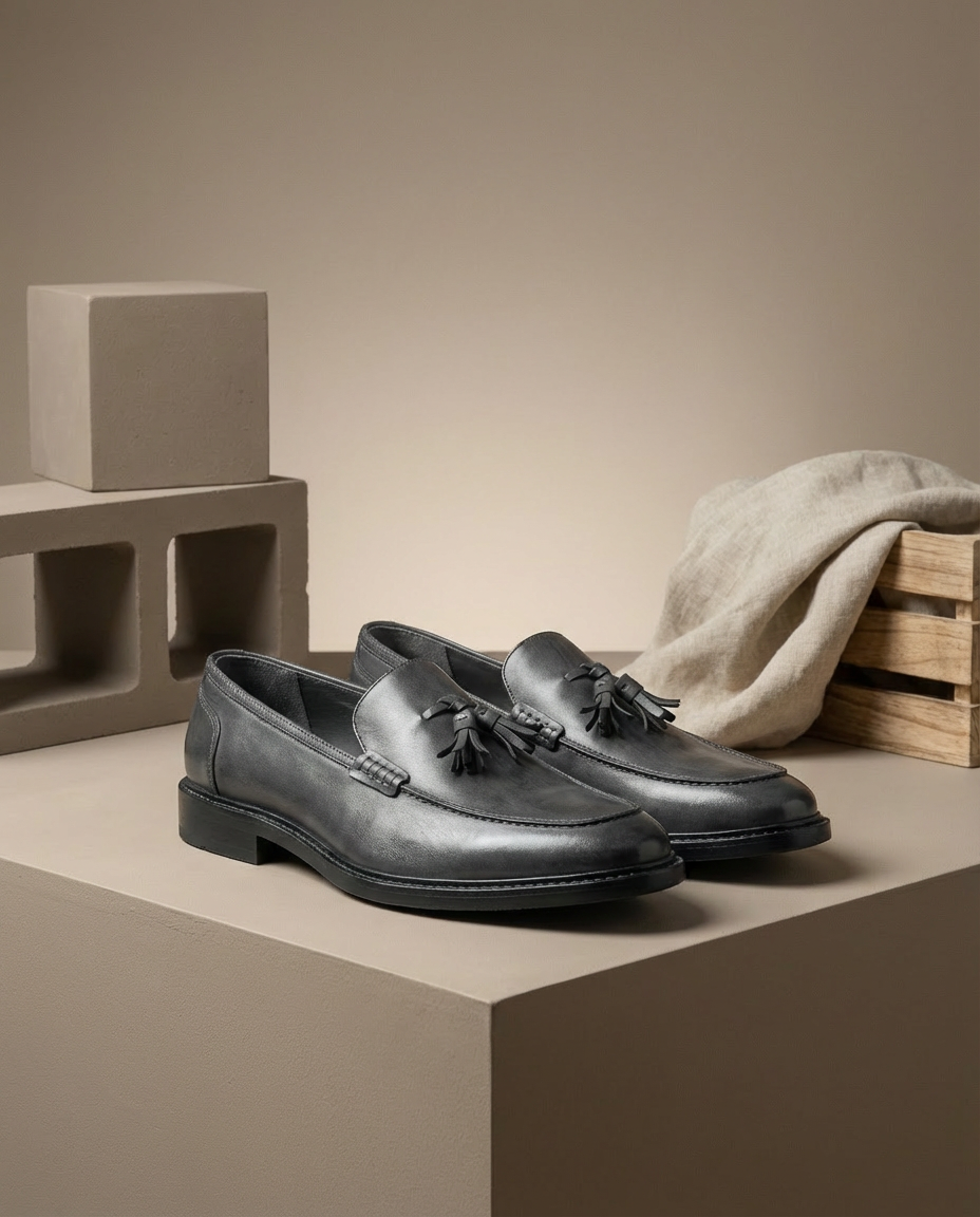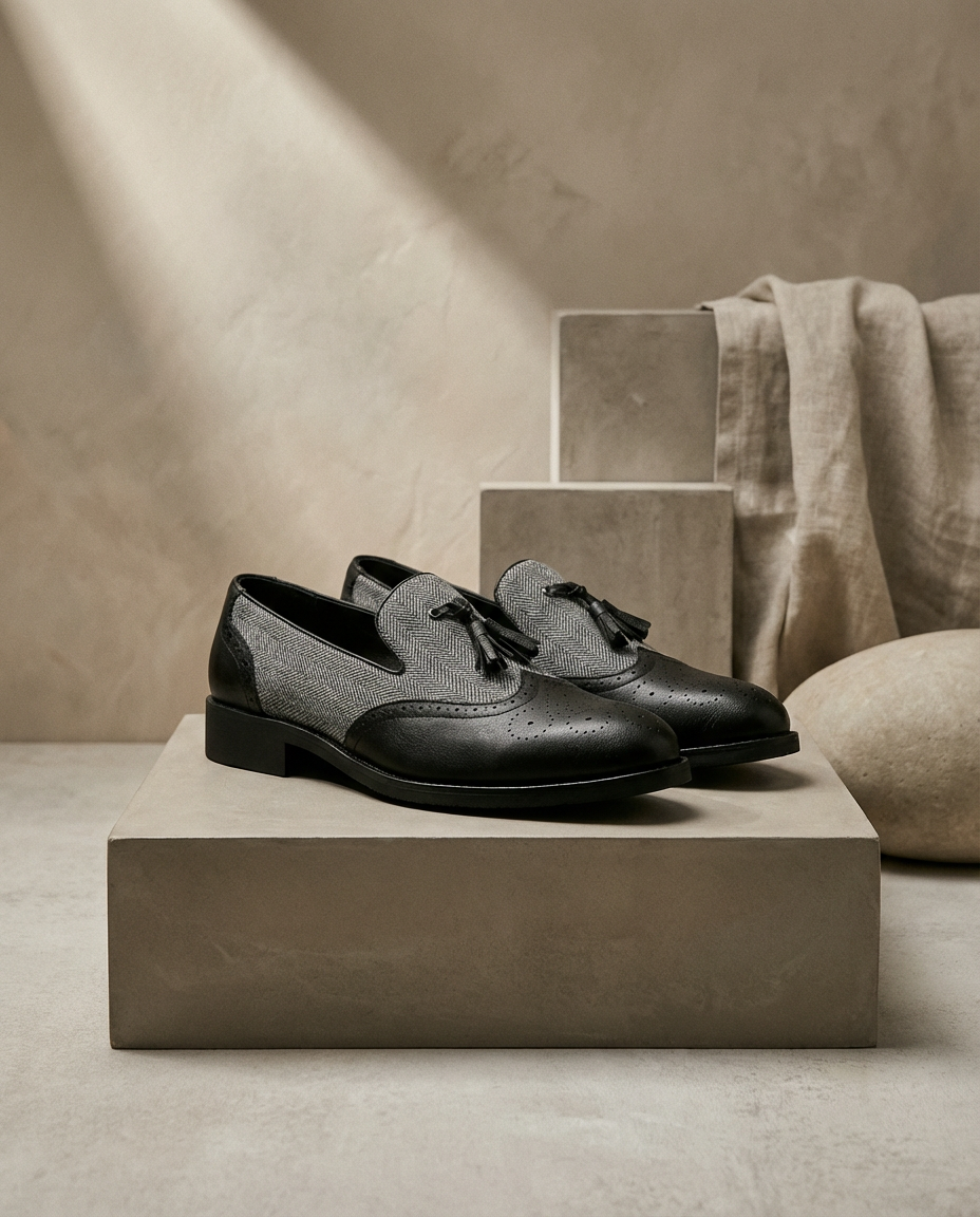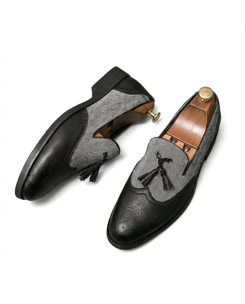 Męskie mokasyny retro | Klasyczny krój | Rzeźbione frędzle | Na co dzień