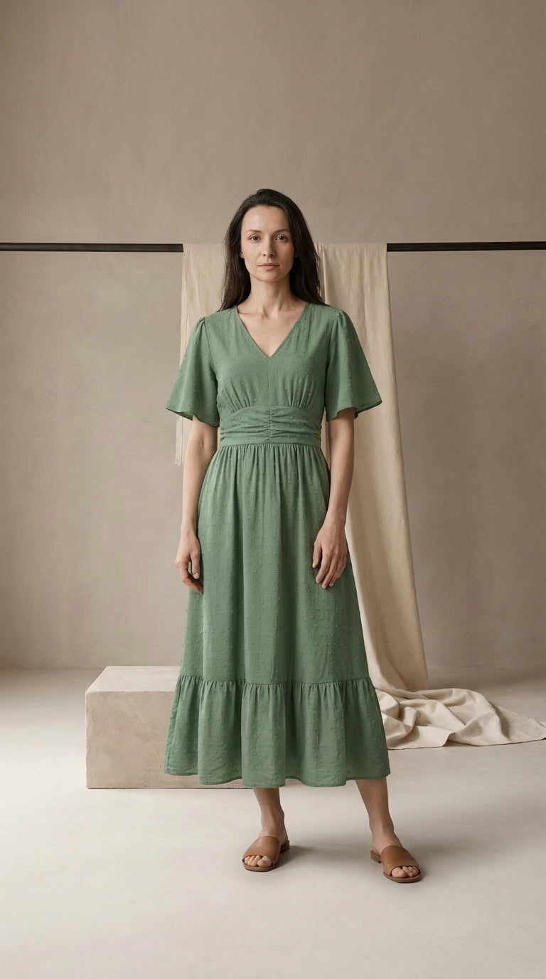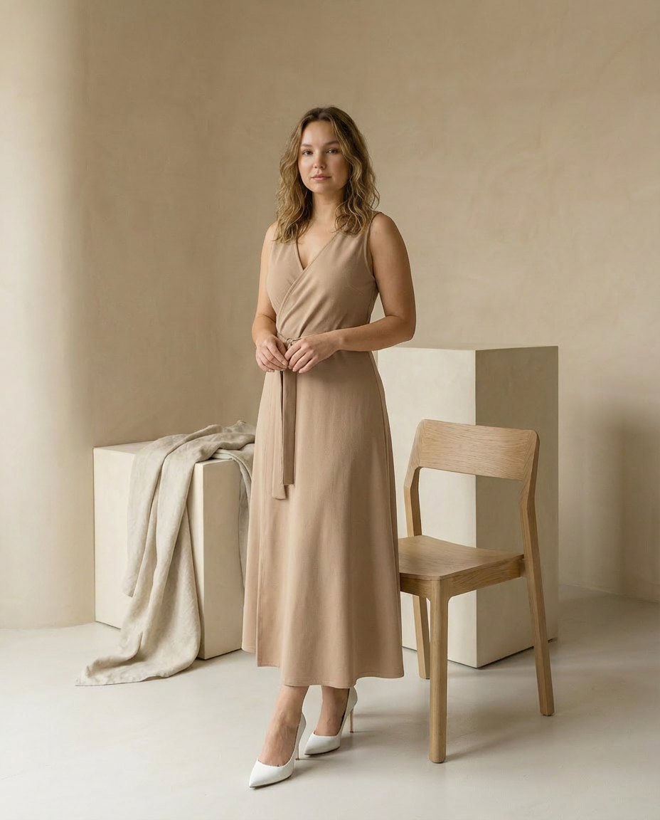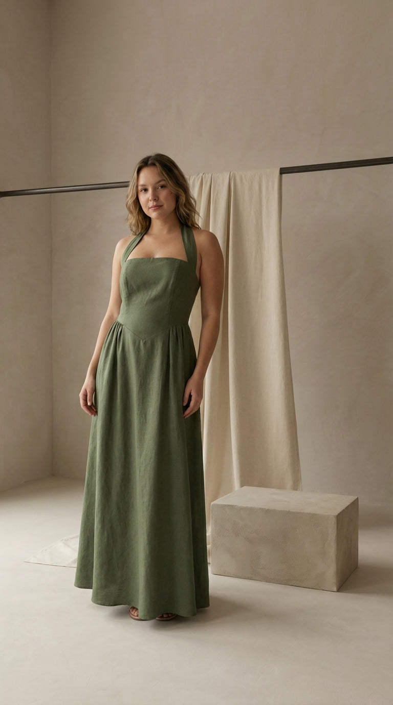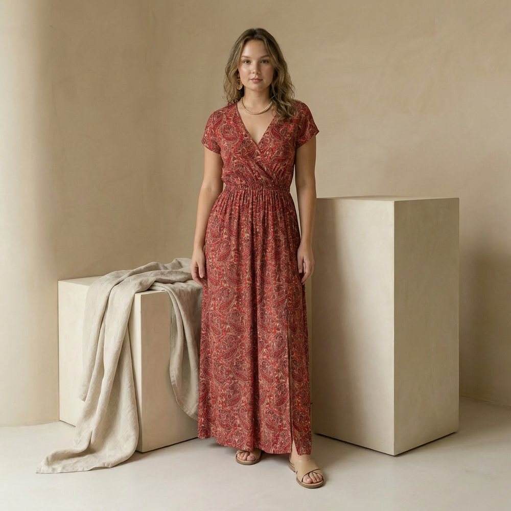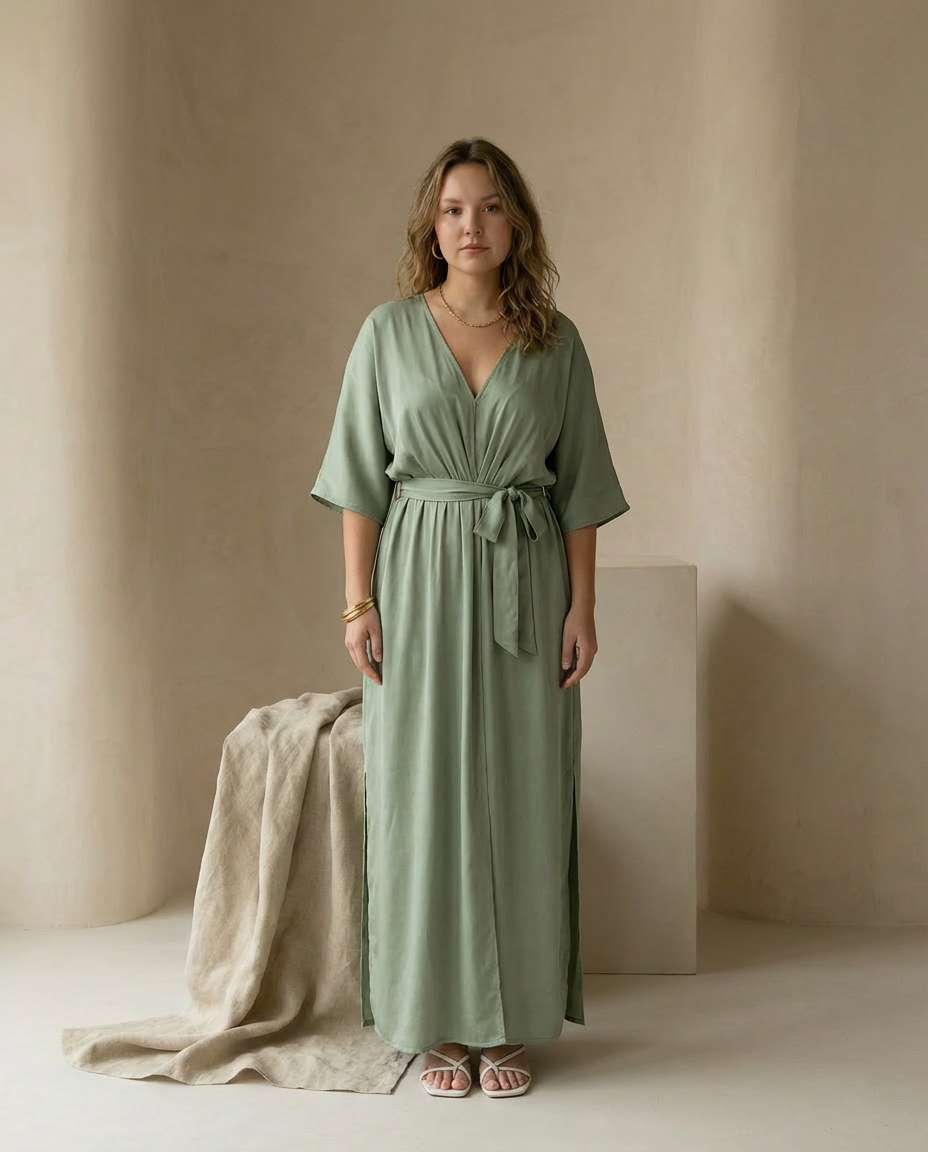 Sukienka Maxi Damska Elegancka | Luźny Krój | Lekkie Drapowanie | Na Wiosnę i Lato