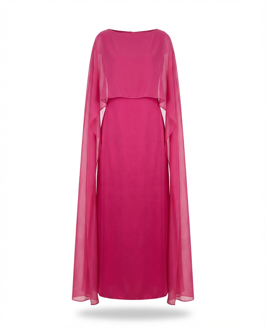 Plisowana Sukienka Maxi z Peleryną | Drapowany Krój | Elegancki Fason