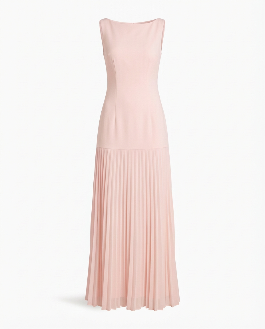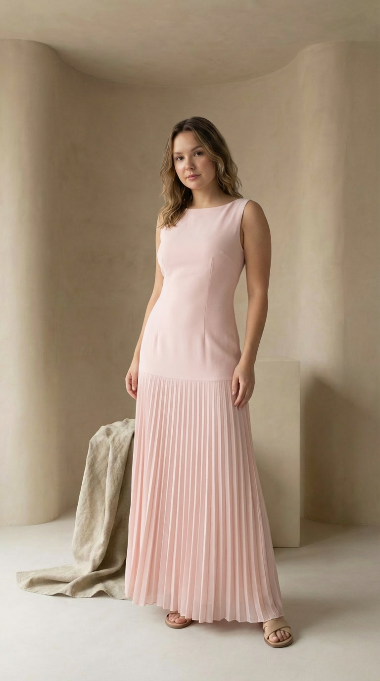 Sukienka Maxi Damska Plisowana | Dopasowany Krój | Bez Rękawów | Na Wieczorne Okazje