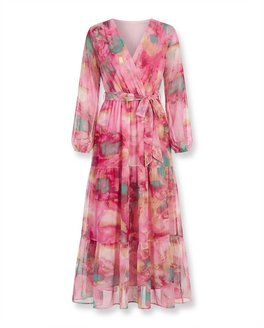 Damska Sukienka Maxi w Kwiaty | Zwiewna Tkanina | Pasek w Talii | Idealna na Lato
