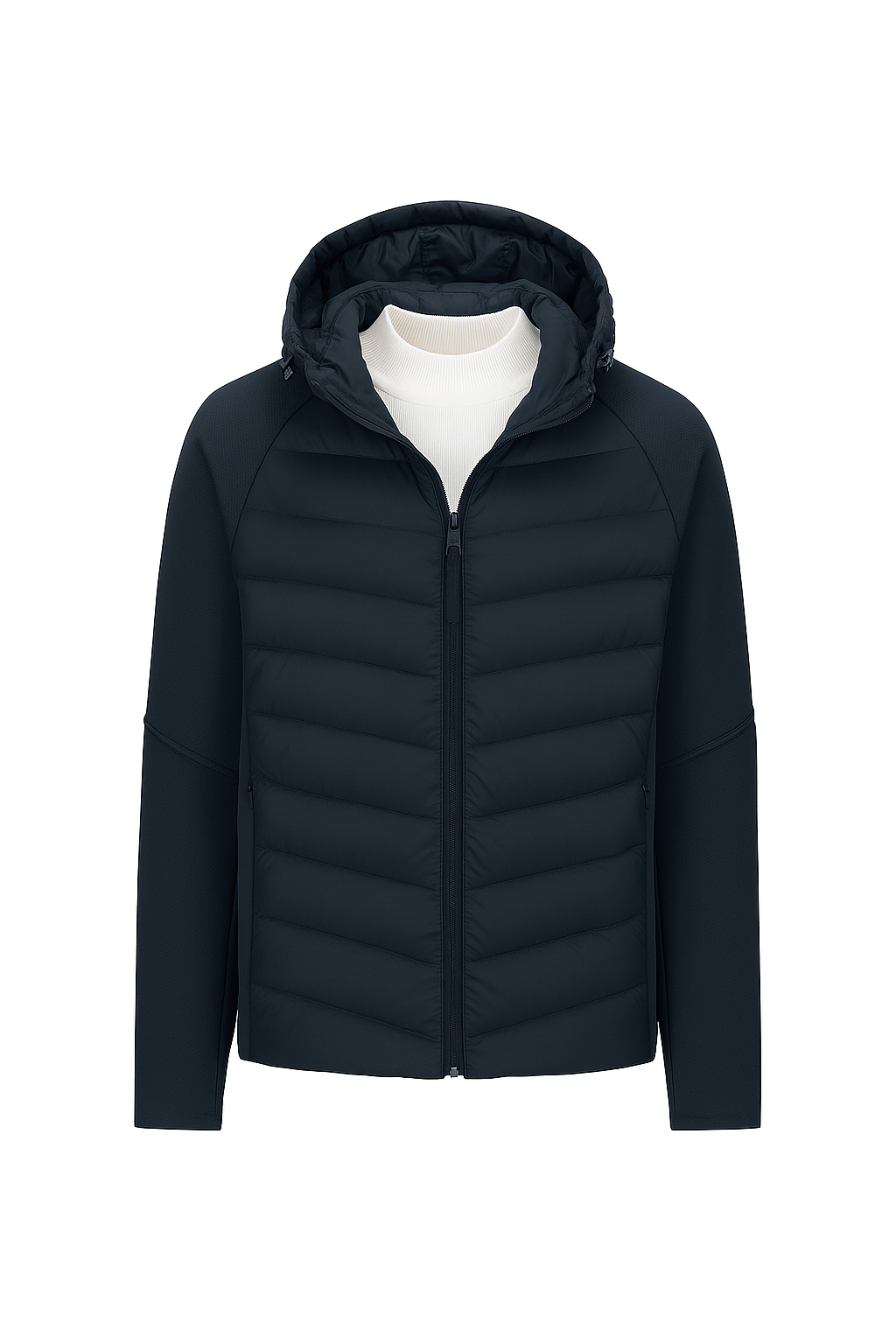 Męska Kurtka Hybrydowa z Kapturem | Pikowany Przód | Lekka i Funkcjonalna