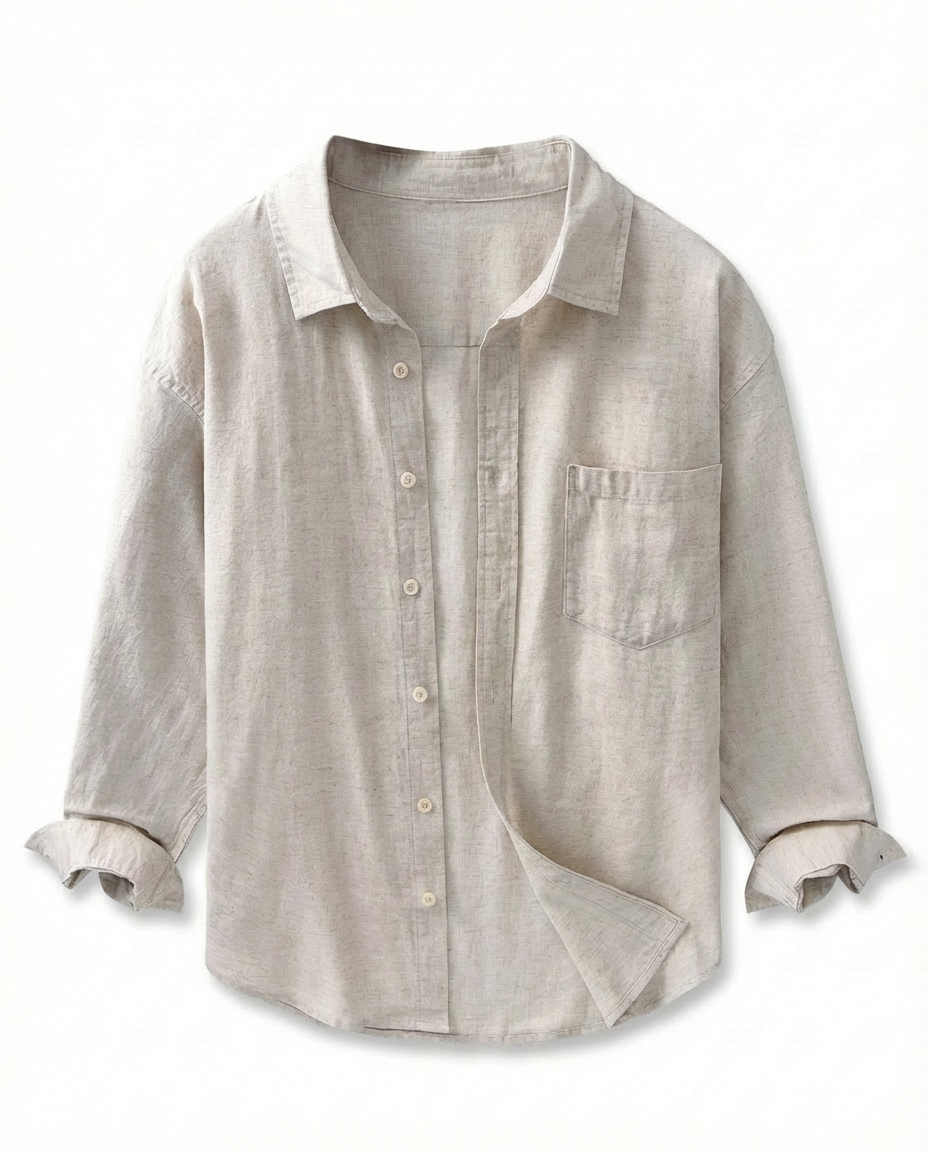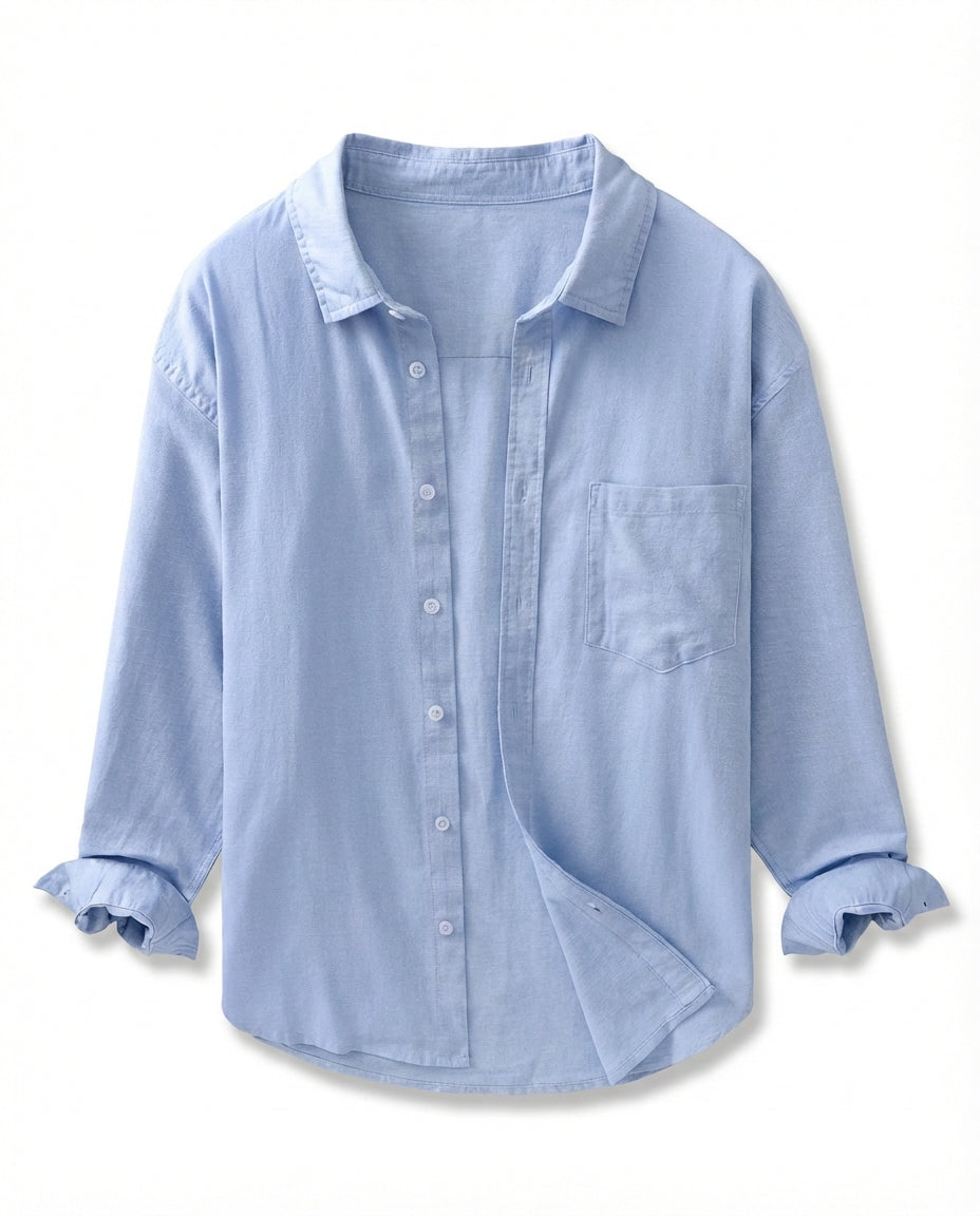 Koszula lniana męska | Luźny krój | Praktyczna kieszeń | Na lato