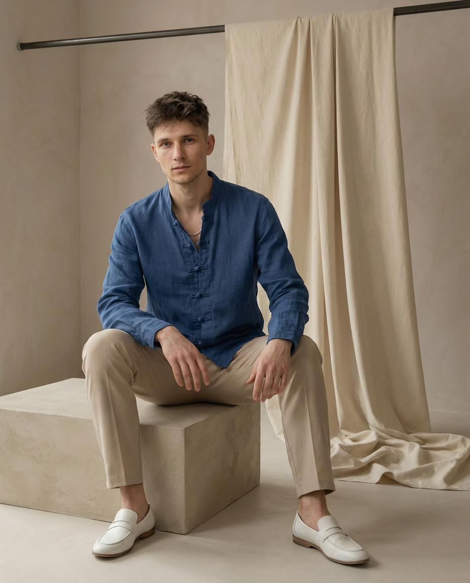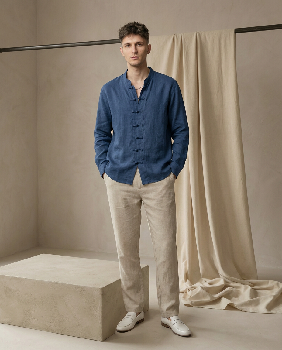 Koszula Męska Tradycyjna Koszula Lniana Męska | Regularny Krój | Oddychająca Tkanina | Na Co Dzień