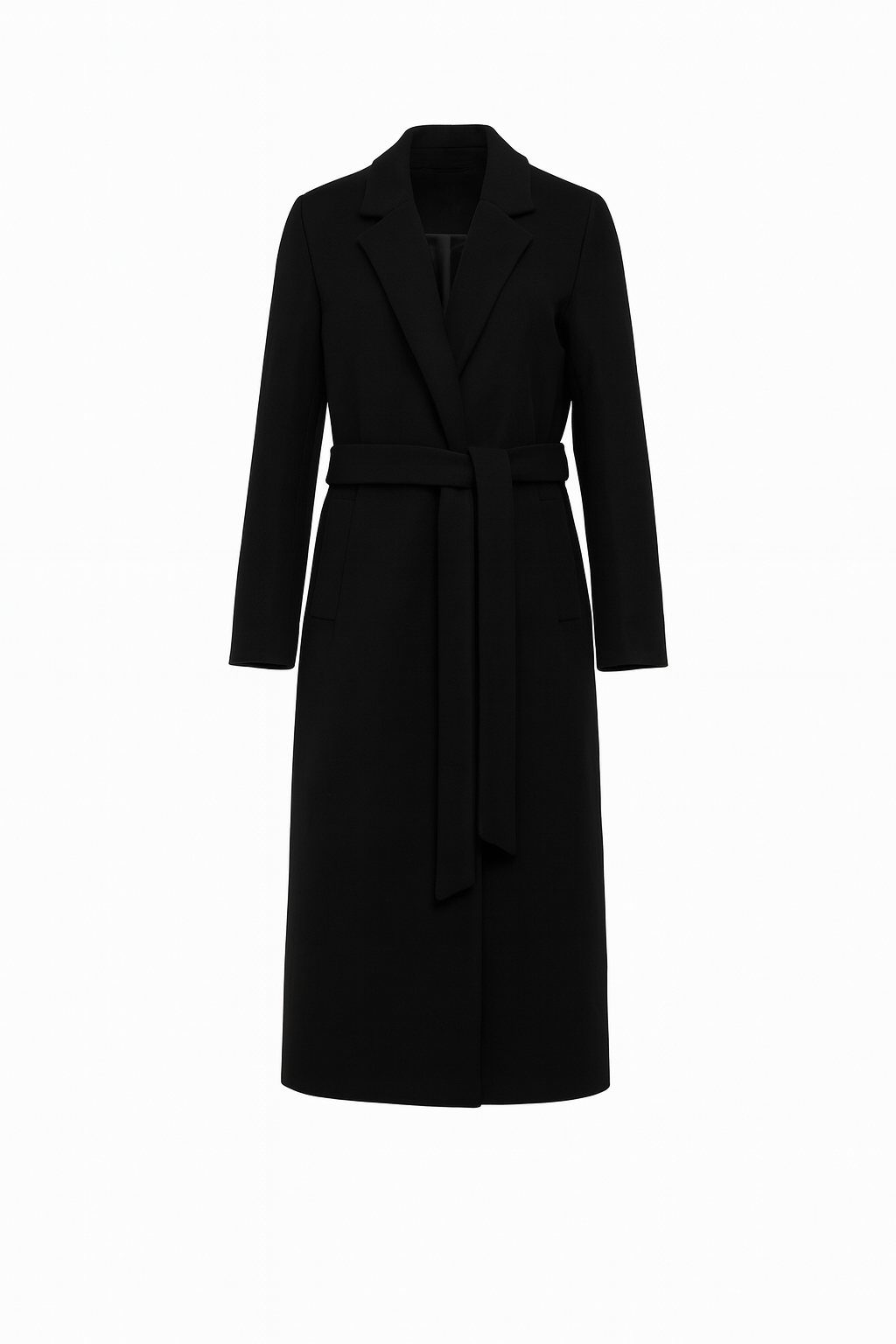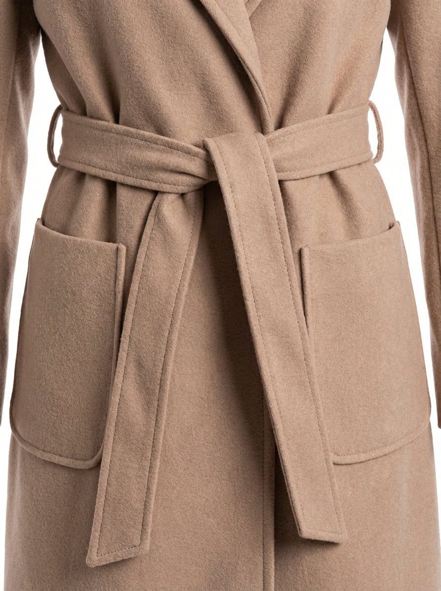 Płaszcz Wiązany w Talii | Miękki Materiał z Wełną | Długość Midi | Minimalistyczna Forma