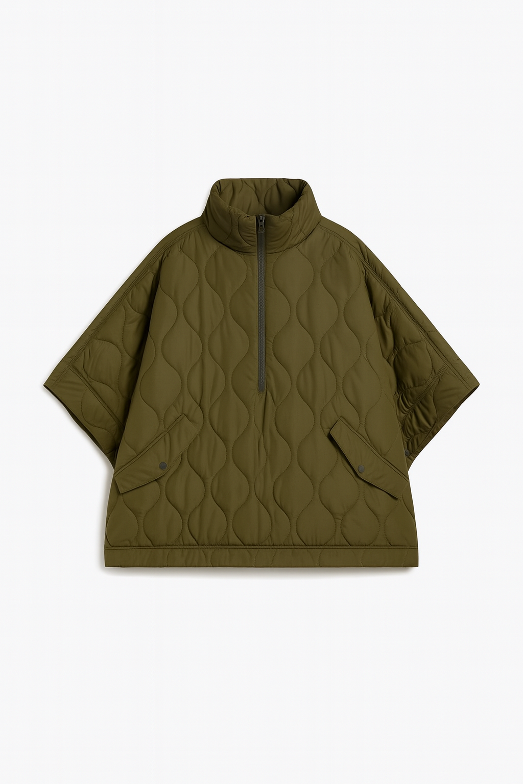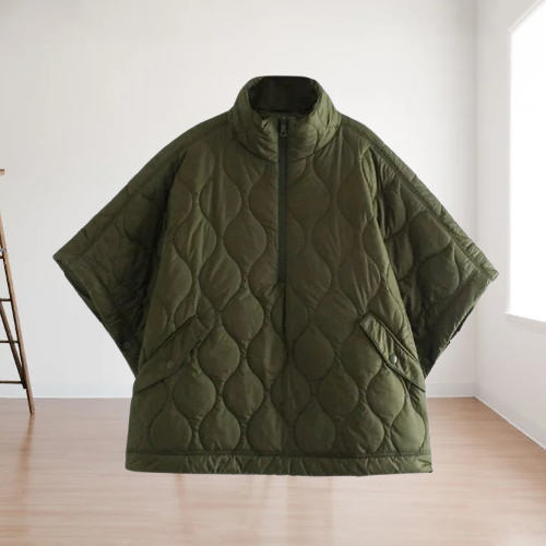 Kurtka Damska Ponczo Pikowane | Oversize Krój | Stójka i Zamek | Na Przejściową Pogodę