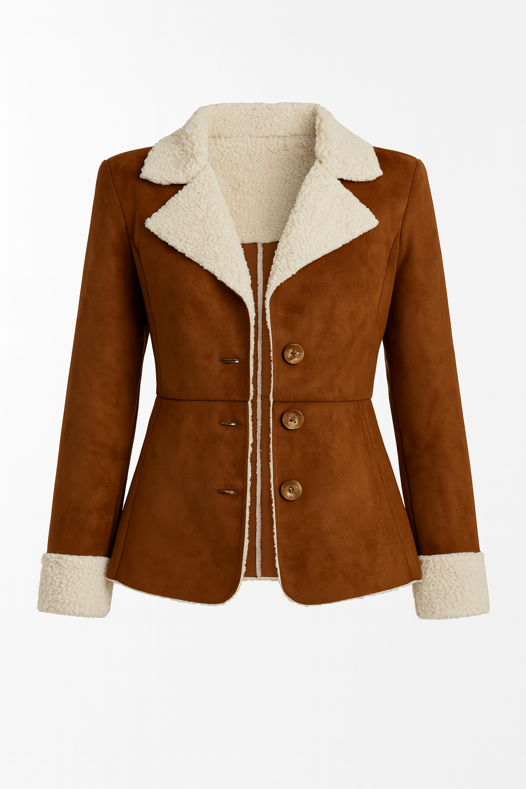 Kurtka Damska z Efektem Zamszu i Kożuszkiem | Taliowany Krój | Styl Casual Elegancki | Na Jesień i Zimę
