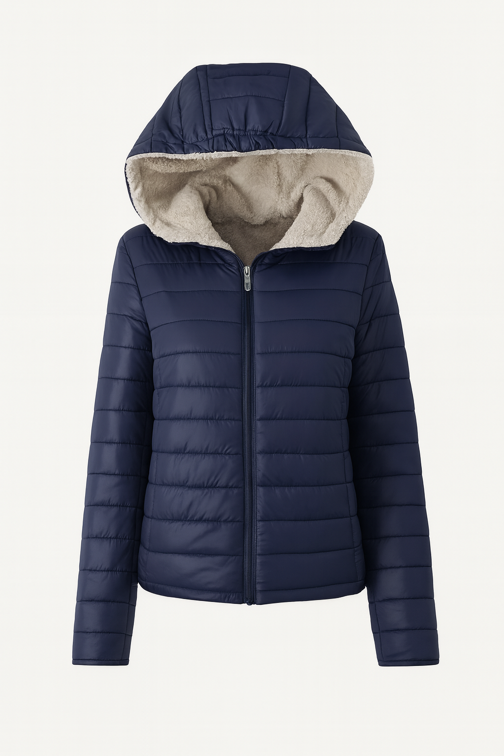 Damska Pikowana Kurtka z Kapturem | Miękkie Podszycie | Komfort na Zimę