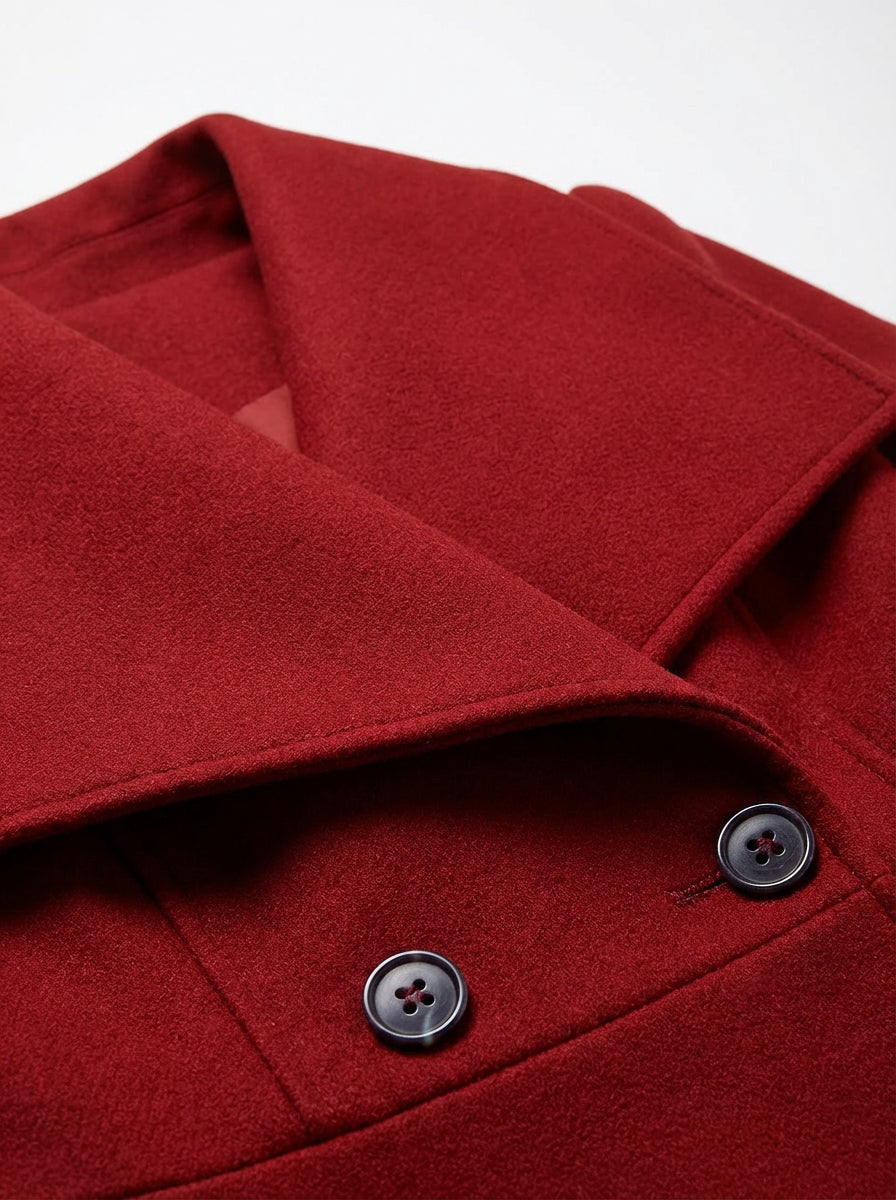Damski Elegancki Płaszcz w Kolorze Czerwonym | Taliowany Krój | Klasyczny Dwurzędowy Design