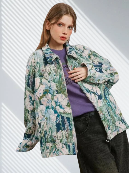 Kurtka Damska z Kwiatowym Wzorem | Lekka i Stylowa | Zamek Błyskawiczny | Wiosenno-Letni Fason