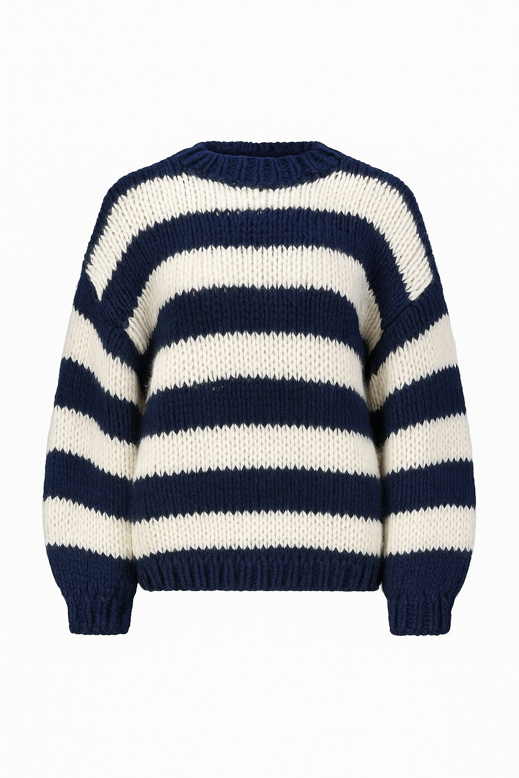 Sweter Dzianinowy w Szerokie Pasy | Miękki Splot | Luźny Krój z Obszernymi Rękawami