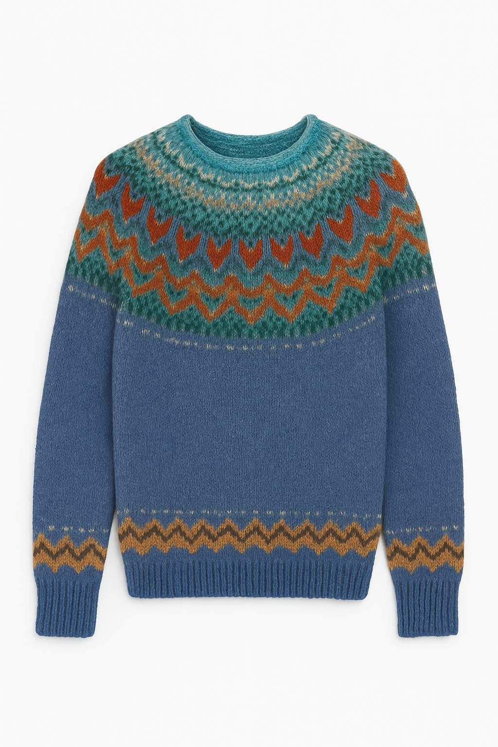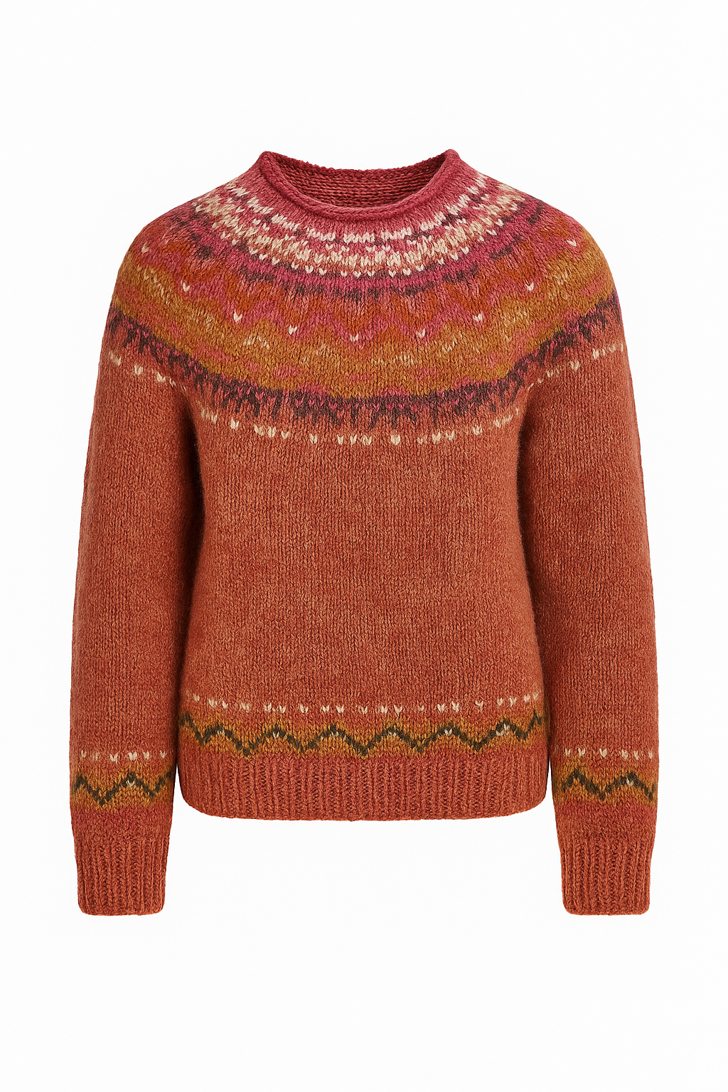 Sweter Dzianinowy | Wielokolorowy Wzór Skandynawski | Ciepły i Miękki