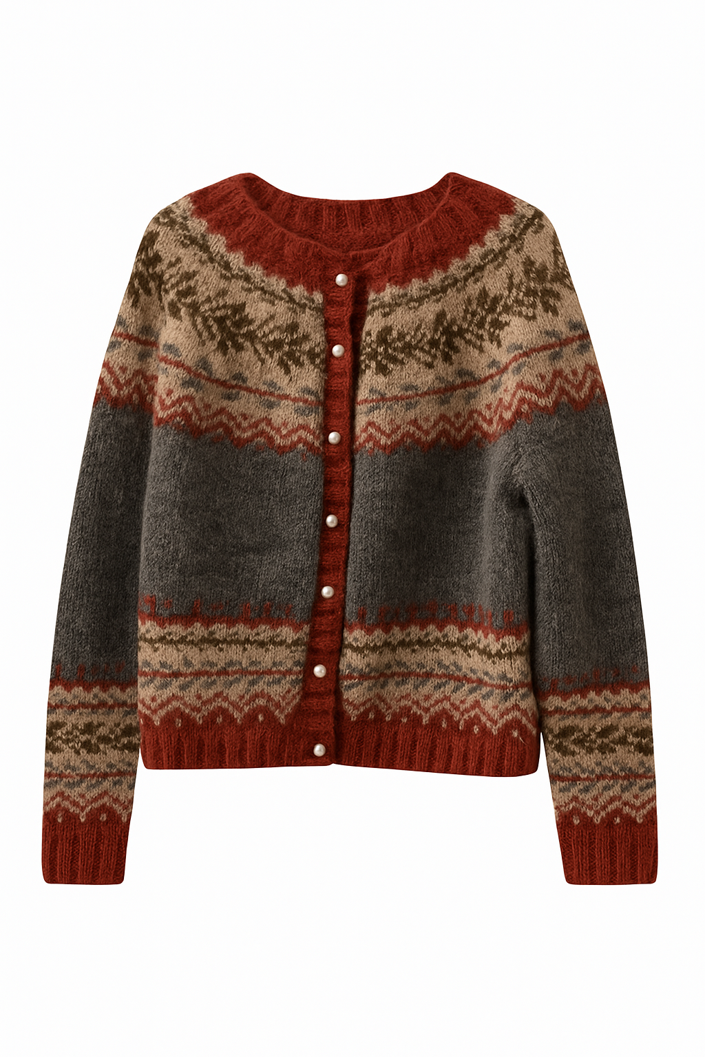 Rozpinany Sweter Dzianinowy | Tradycyjny Wzór Skandynawski | Miękki i Stylowy
