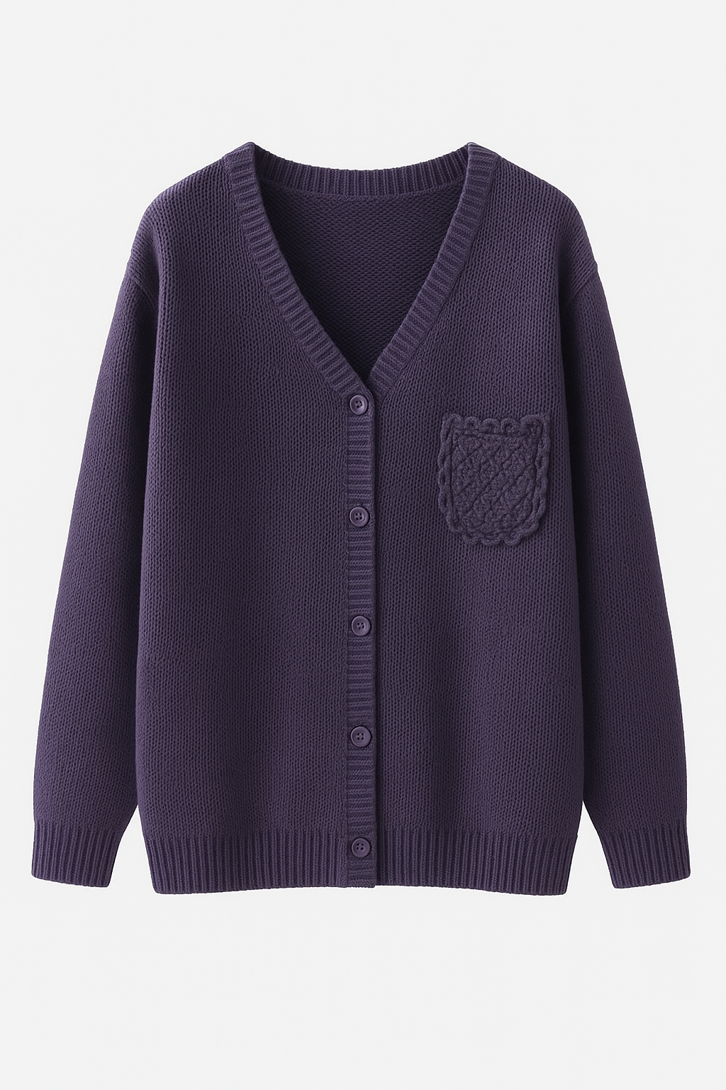Kardigan Damski z Dzianiny | Ozdobna Kieszonka | Swobodny i Stylowy