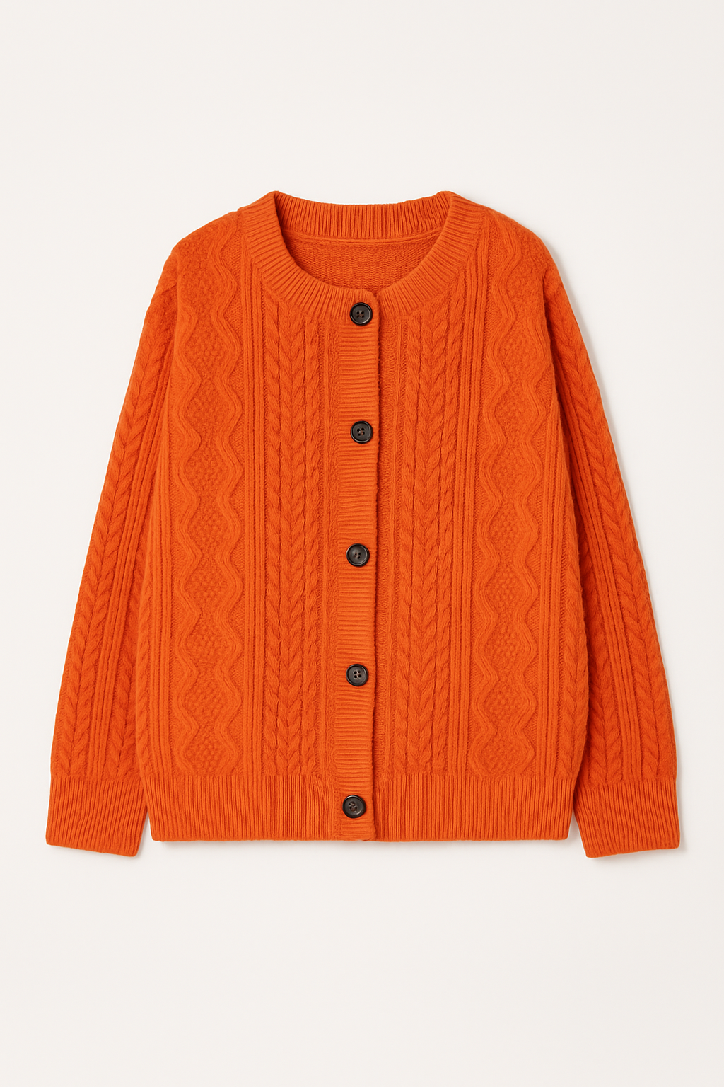 Kardigan Dzianinowy z Warkoczowym Splotem | Gruba Faktura | Luźny Fason