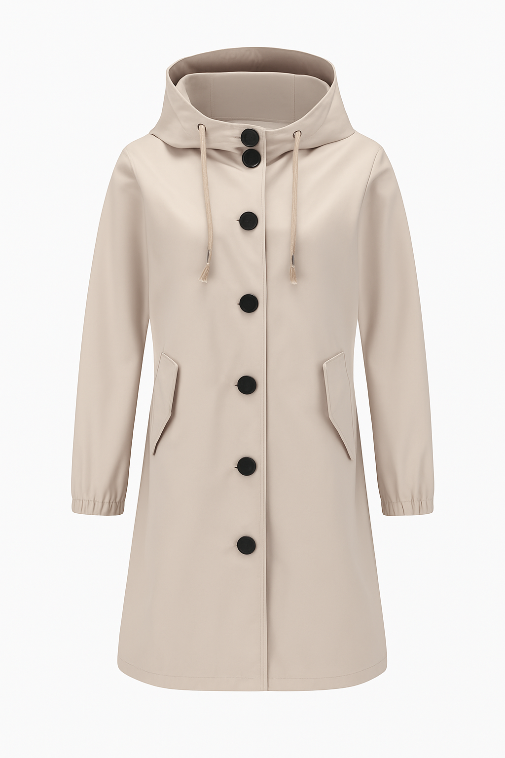 Lekka Kurtka z Kapturem | Zapinana na Guziki | Wodoodporna Powłoka