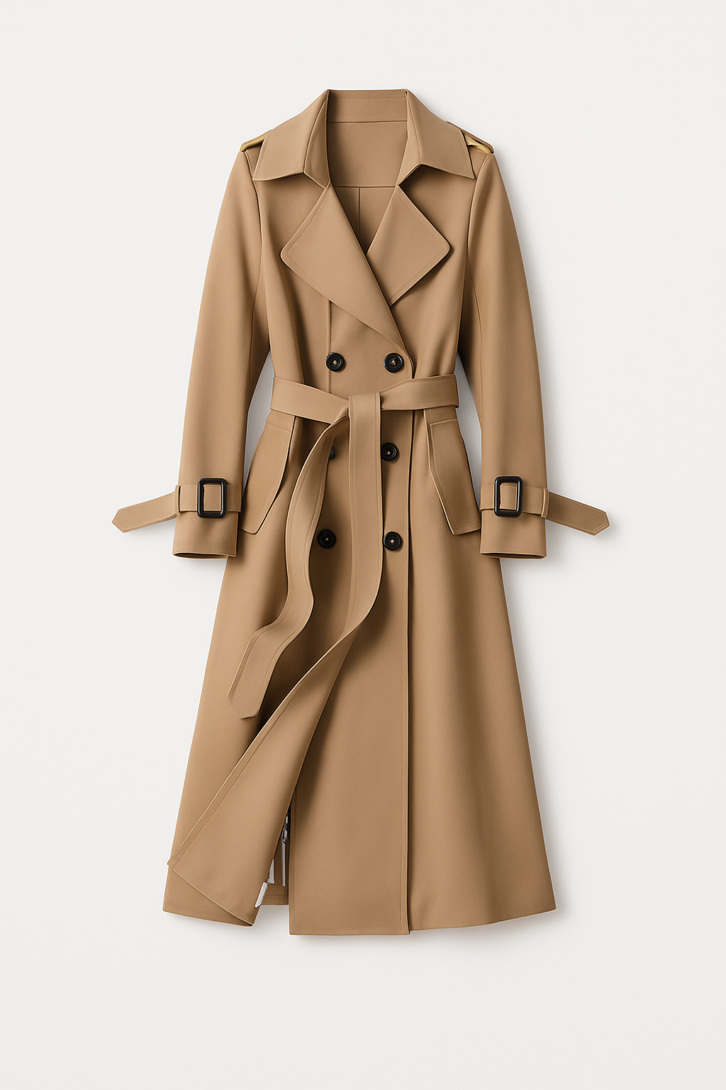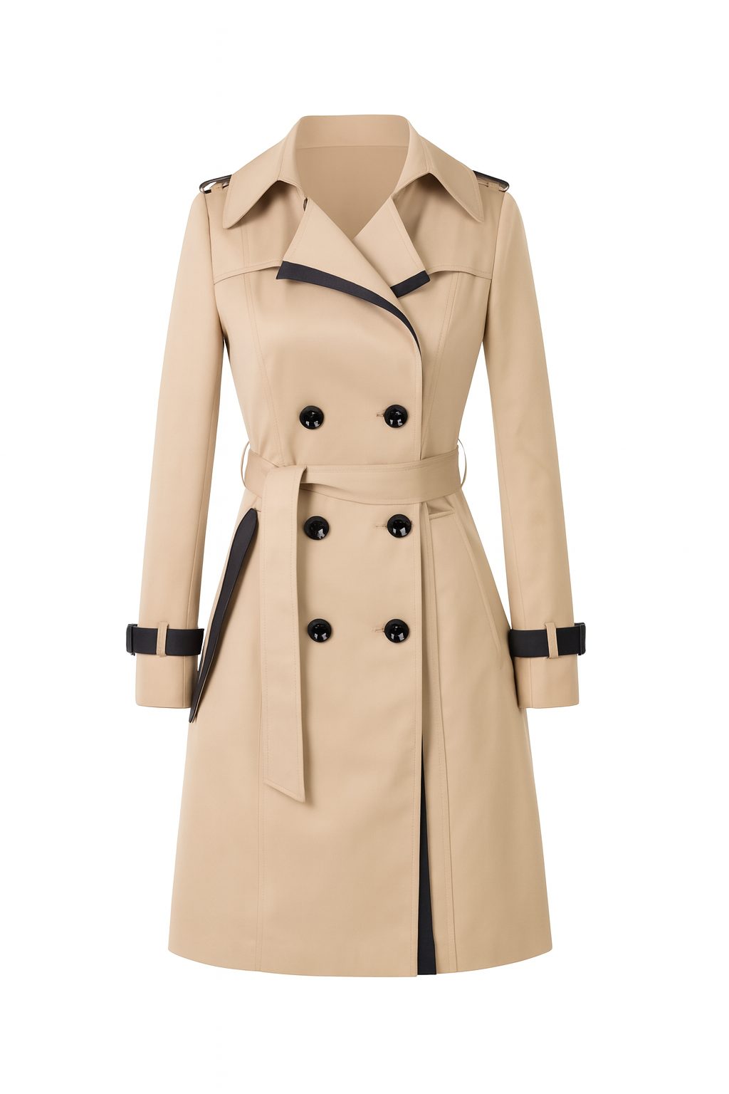 Trencz Dwurzędowy z Paskiem | Klasyczny Krój | Stylowa Elegancja na Co Dzień