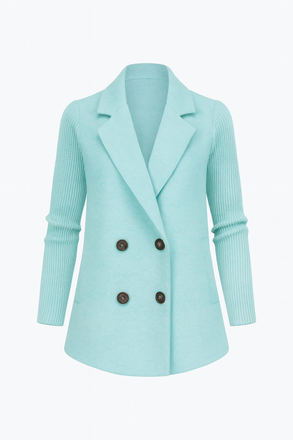 Kurtka Damska z Dzianinowymi Rękawami | Dekoracyjne Guziki | Krótki Fason | Styl Casual z Charakterem