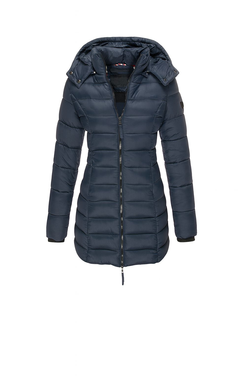 Pikowany Płaszcz Zimowy | Taliowany Krój | Odpinany Kaptur