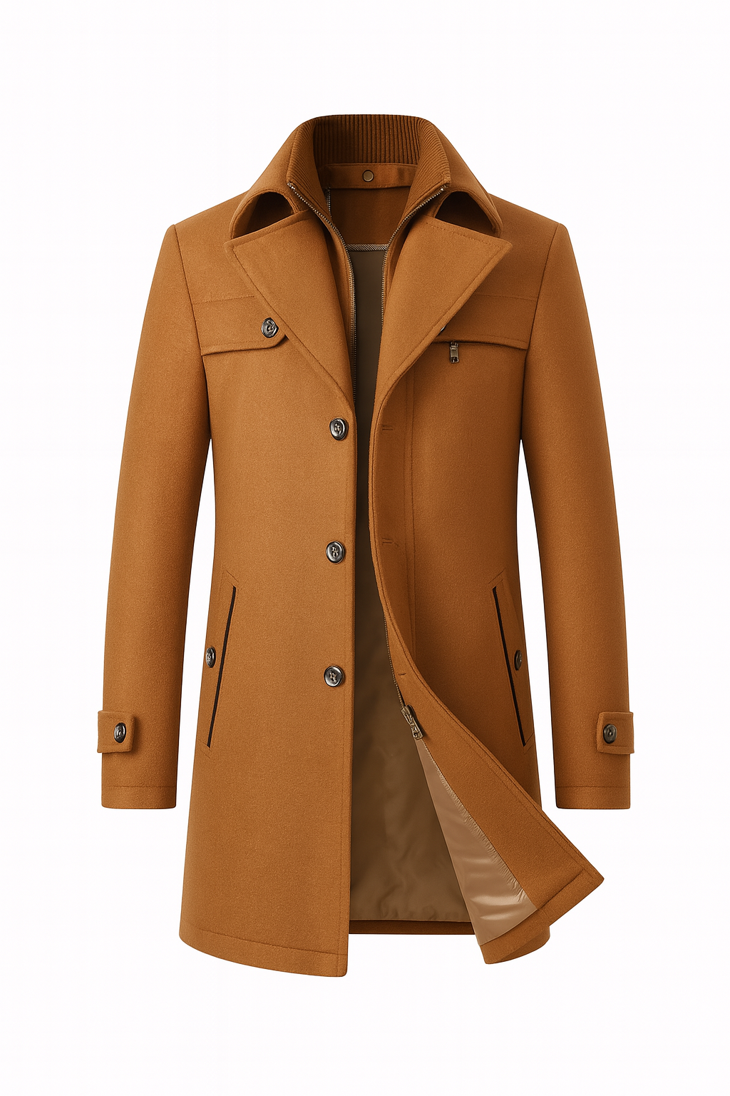 Płaszcz Męski z Podszewką | Podwójne Zapięcie | Elegancki Krój | Na Chłodne Dni