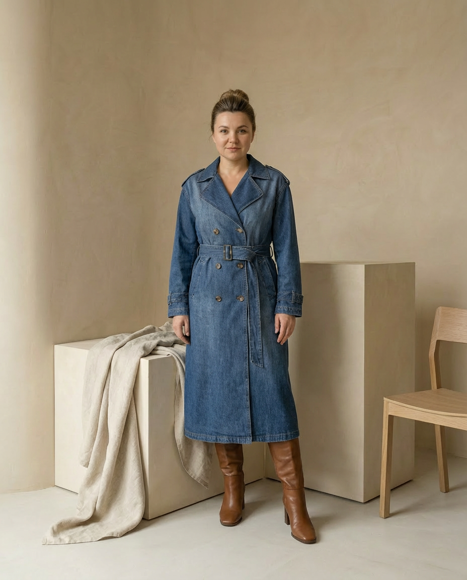 Trencz Damski Elegancki | Dopasowany Krój | Regulowany Pasek | Na Co Dzień