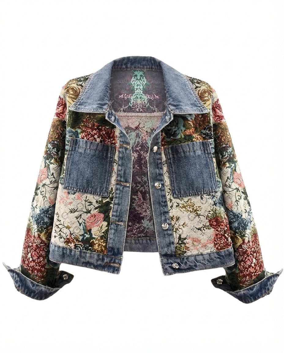 Kurtka Dżinsowa Damska Dzinsowka | Luźny Krój | Kwiatowe Detale | Na Co Dzień