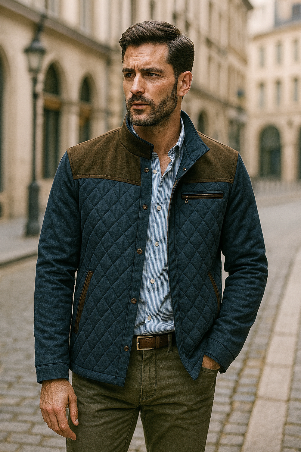 Męska Pikowana Kurtka Przejściowa | Kontrastowe Wstawki | Stójka | Styl Casual-Elegancki