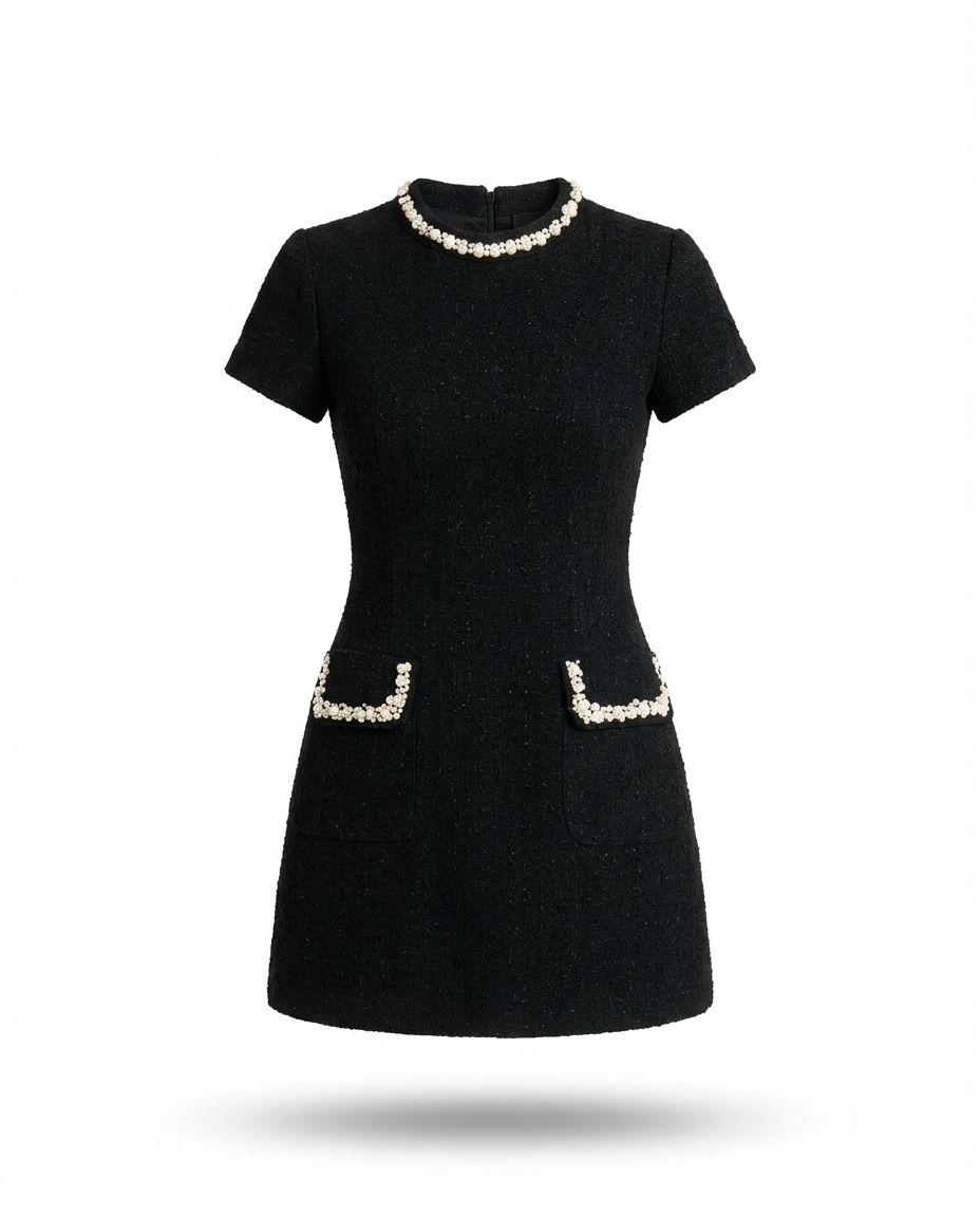 Sukienka Damska Mini Elegancka | Dopasowany Krój | Perłowe Wykończenie | Na Co Dzień i Na Wyjścia