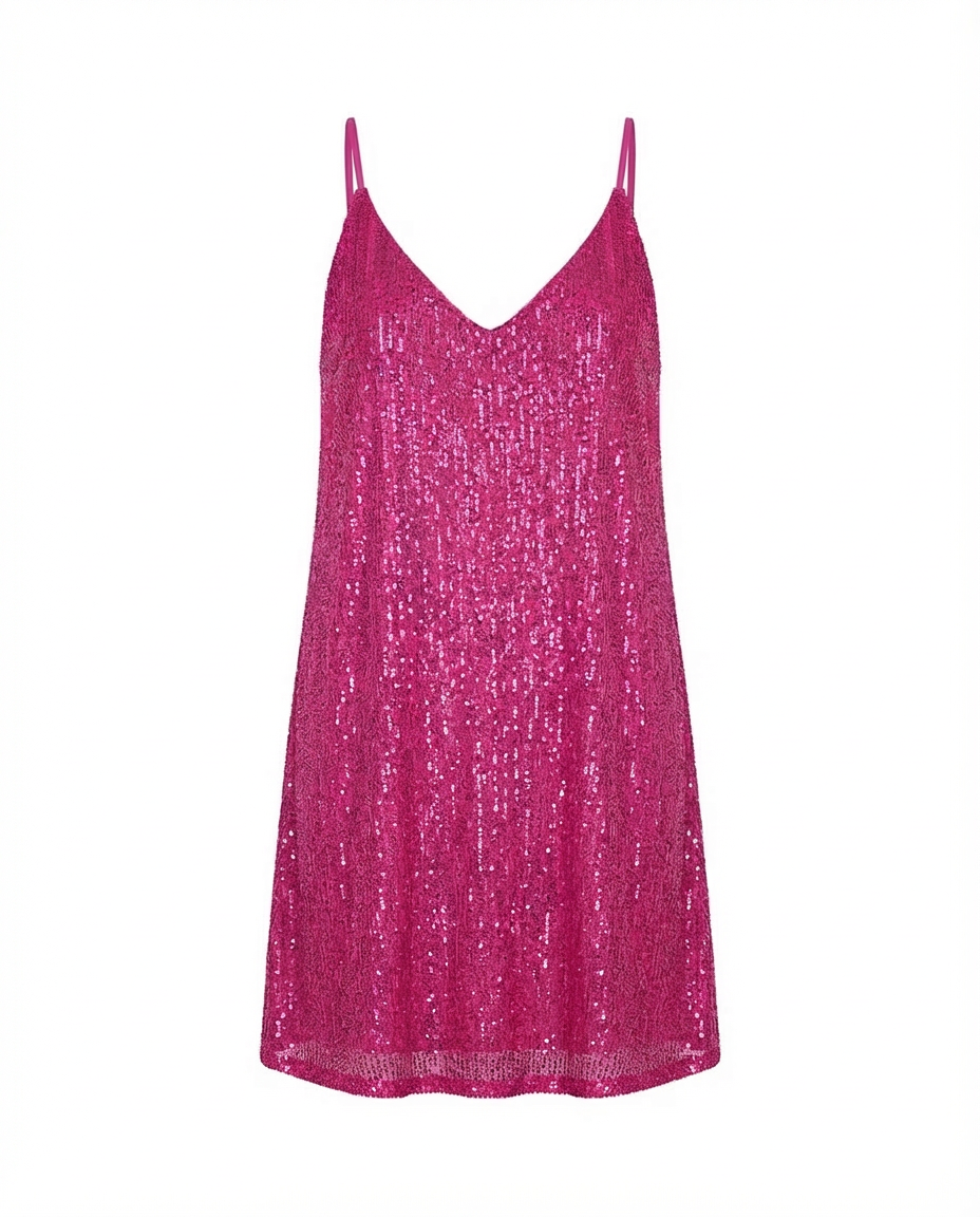 Krótka Sukienka z Cekinami | Lekki Luźny Krój z Dekoltem w Serek | Stylowa Sukienka na Imprezę