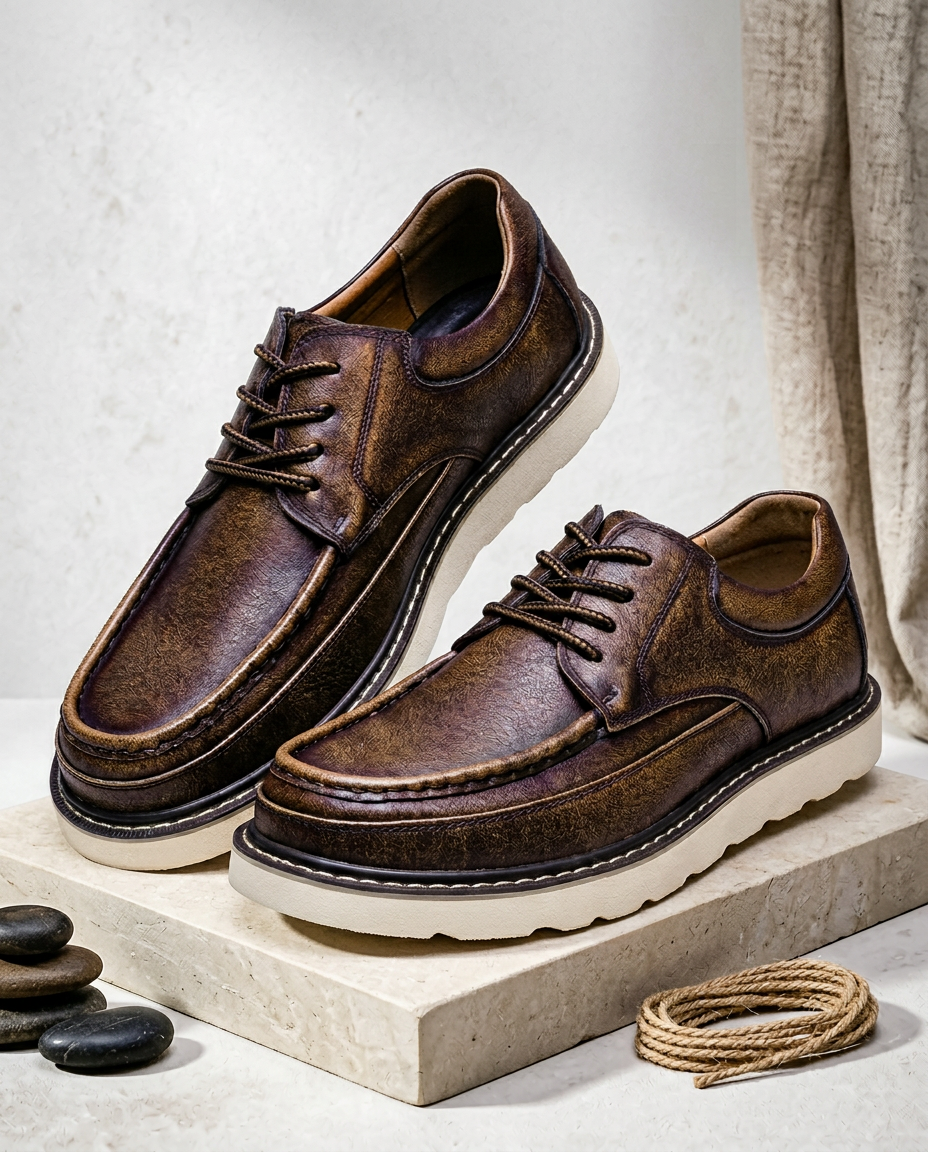 Buty Męskie Skórzane Sznurowane | Klasyczne Trzewiki | Styl Casual i Elegancki