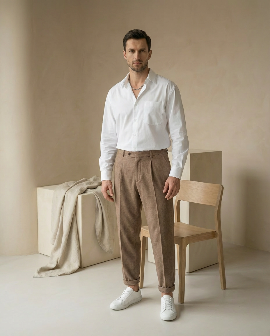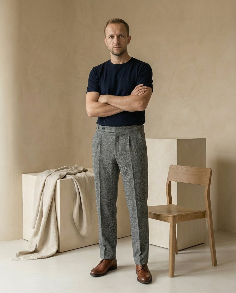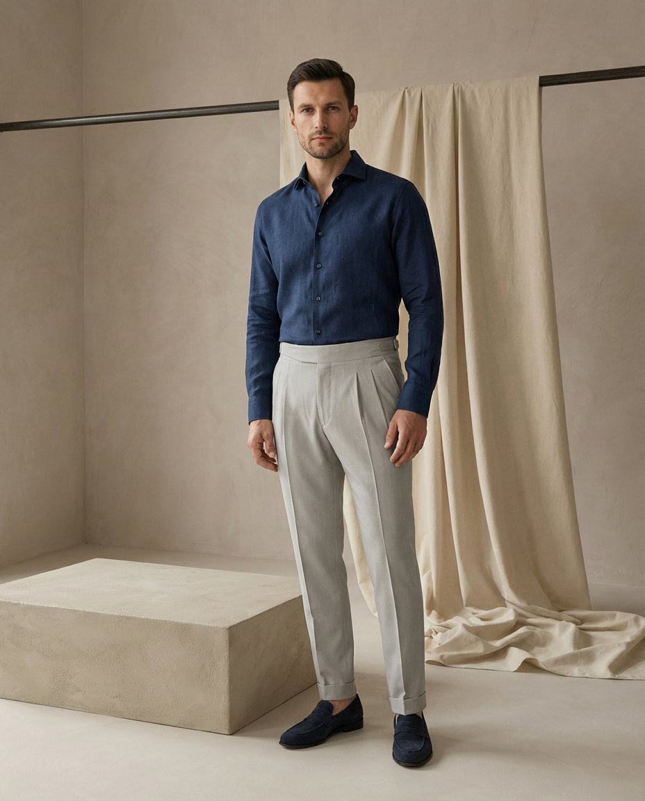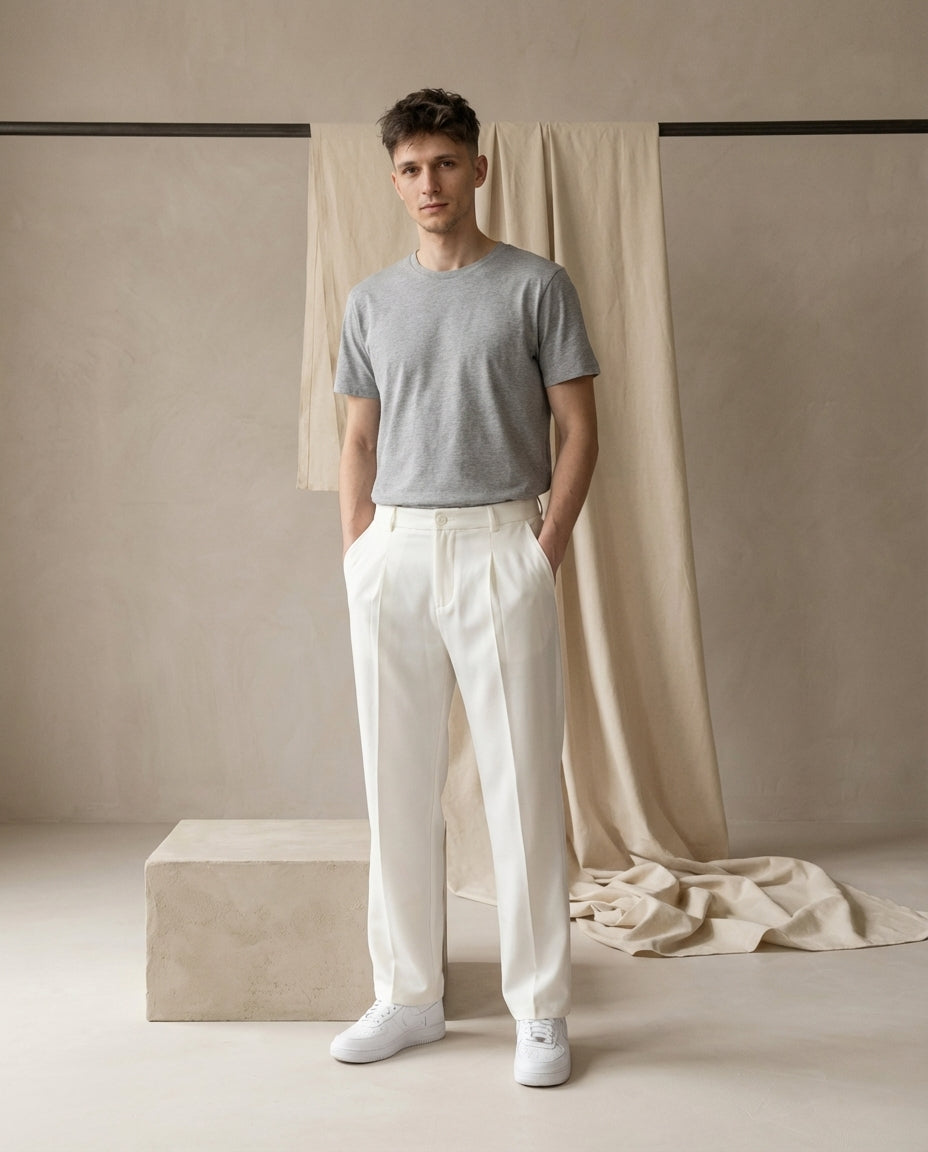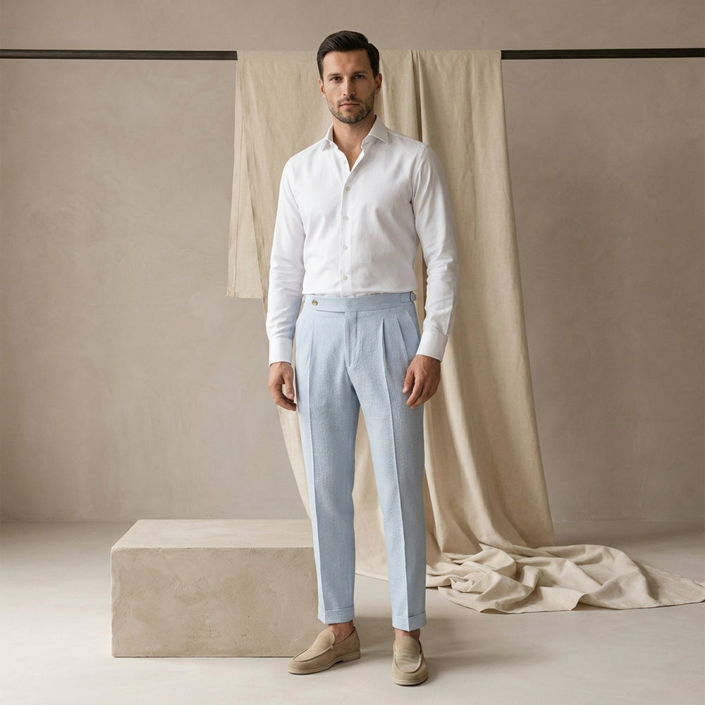Męskie letnie spodnie z zakładkami | Zwężany krój | Lekki materiał | Na lato