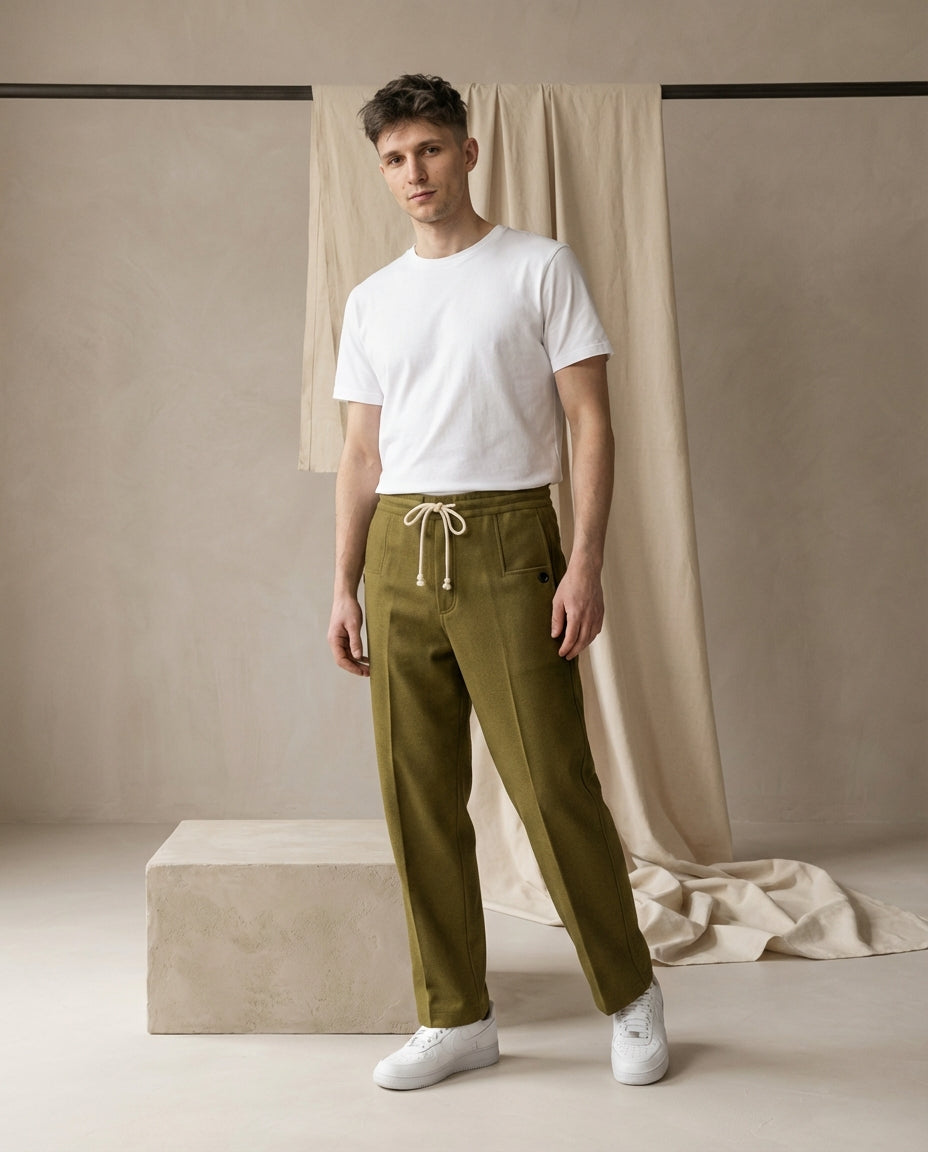 Lniane szerokie spodnie męskie | Wygodny krój | Regulowany pas | Na co dzień