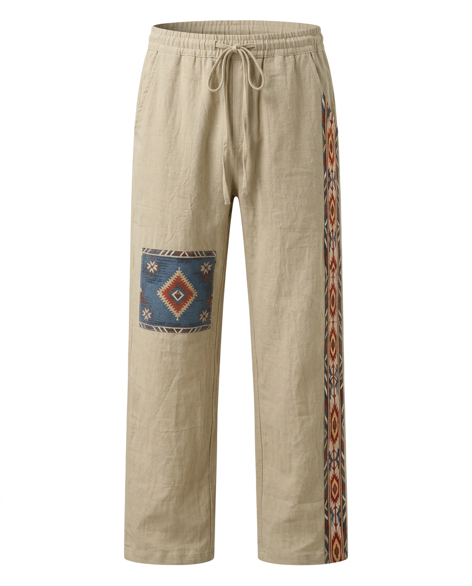 Spodnie męskie w stylu boho | Luźny krój | Wzory etniczne | Swobodne